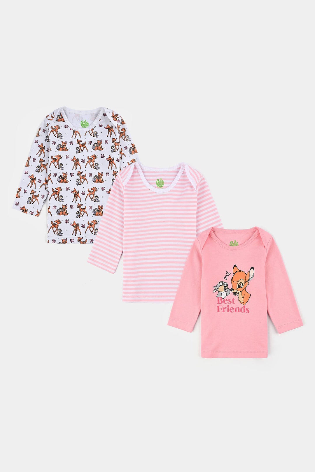 Infant Girls Cotton Interlock Bambi T-Shirt F/S Pack OF 3 - Pink/White