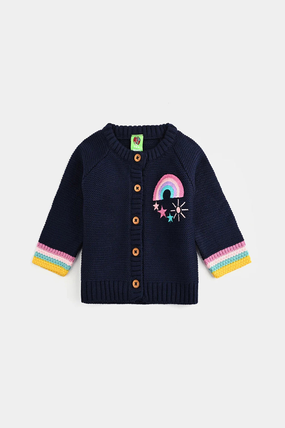 Infant Girls Acrylic Sweater-Rainbow - NAVY