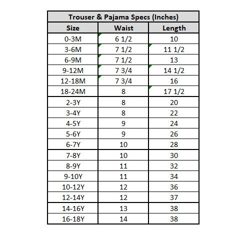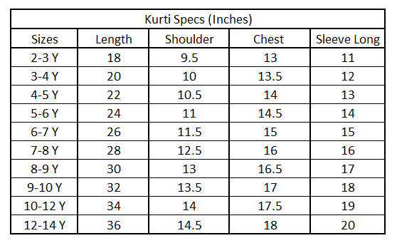 SIZE CHART NOTE: Please allow 0.5 inch +/- tolerance due to manual measurement