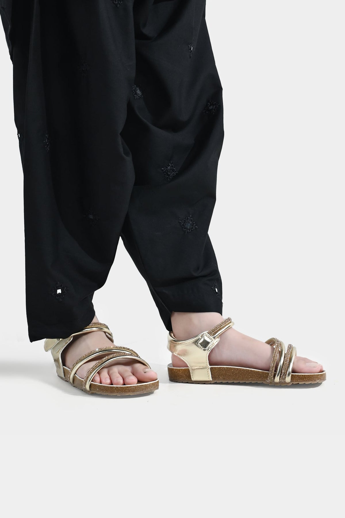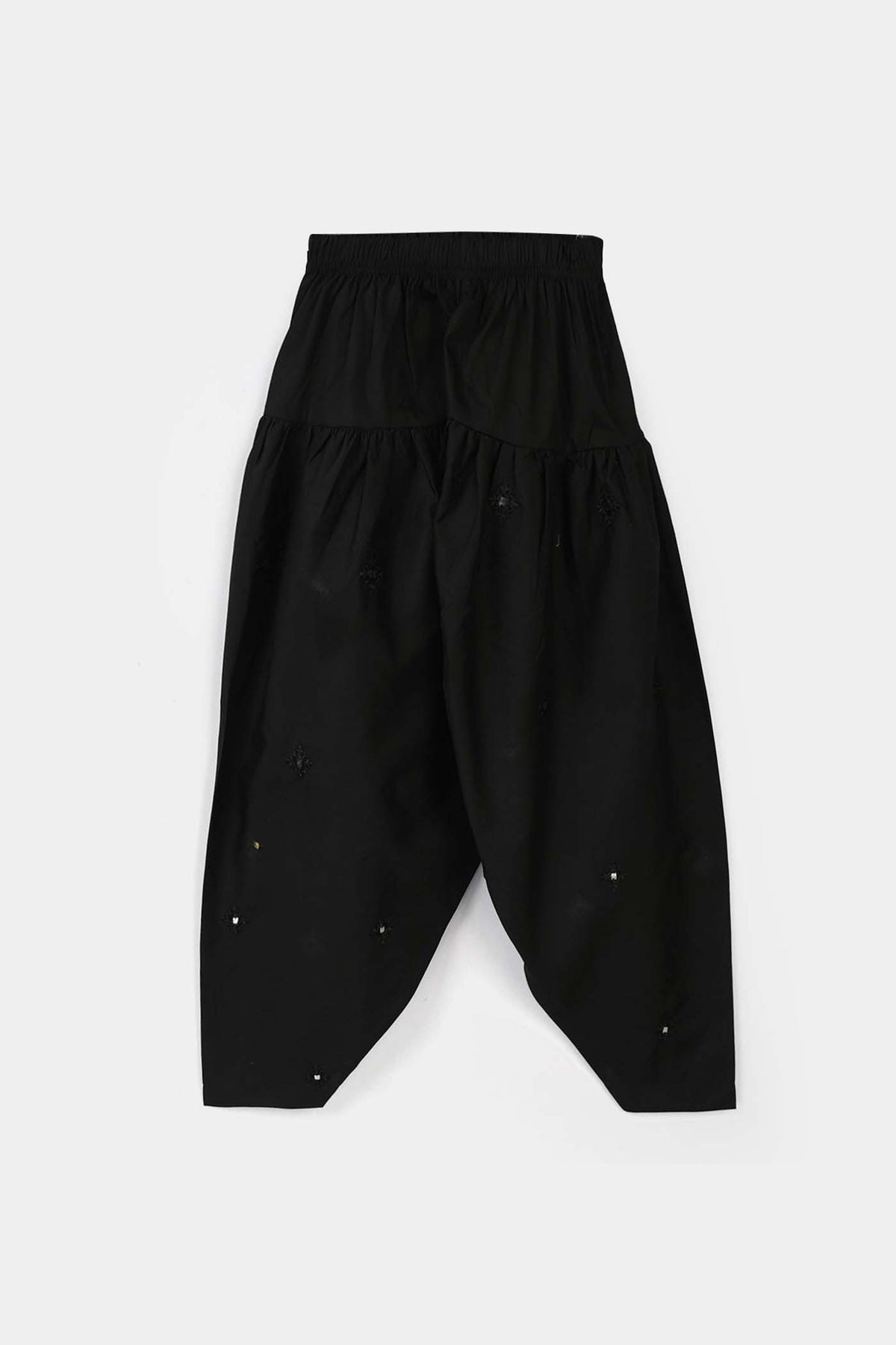 Girls’ cotton embroidered shalwar in black, featuring delicate bootie embroidery for a stylish and traditional look. Comfortable and perfect for casual or festive wear.
