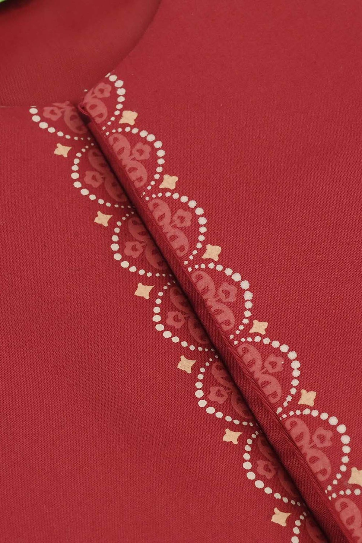 Infant boys' 3-piece cotton poplin suit in red includes a kurta, matching pajama, and a coordinating waistcoat, perfect for festive occasions or special events.