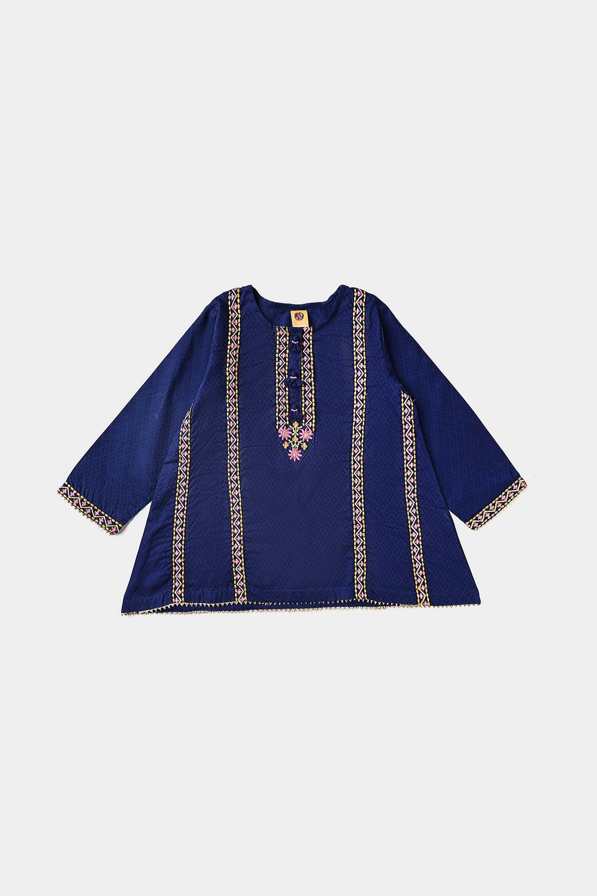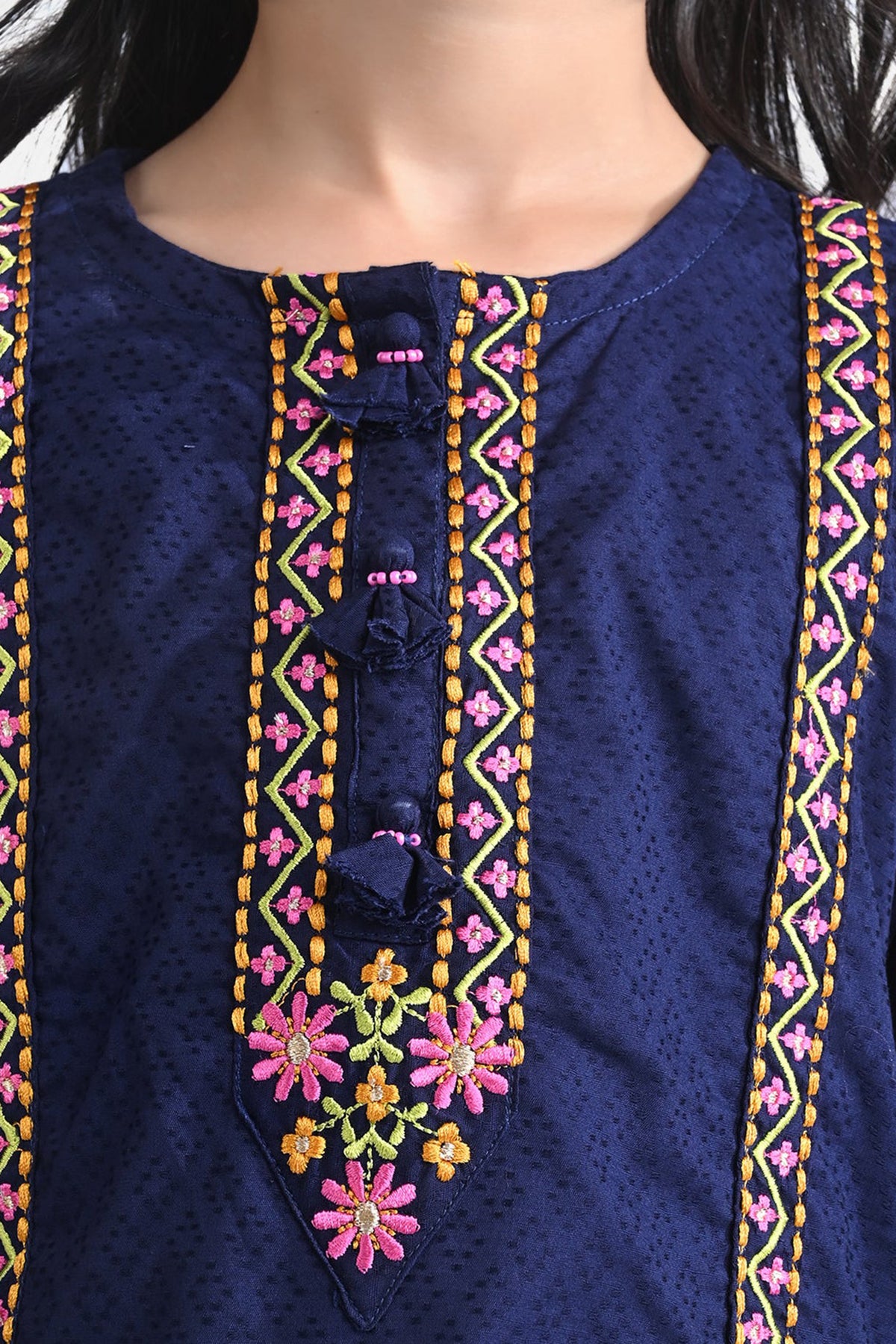 Bachaa Party brings you the best price Girls Jacquard EMB 2PC Suit Sakoon-Navy Blue with express shipping all over Globe.