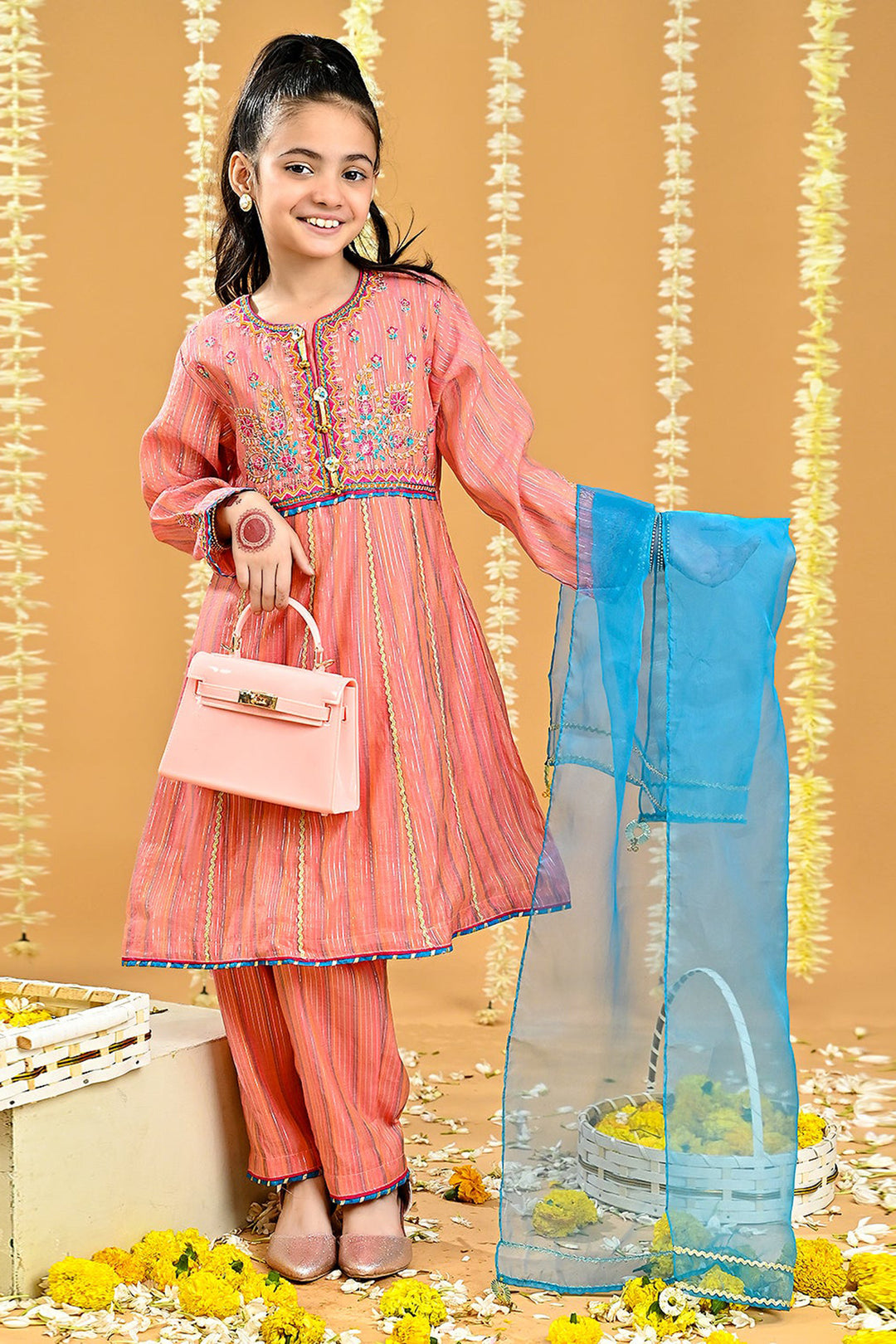 Girls Raw Silk 3 pcs Suit Sakoon-Pink