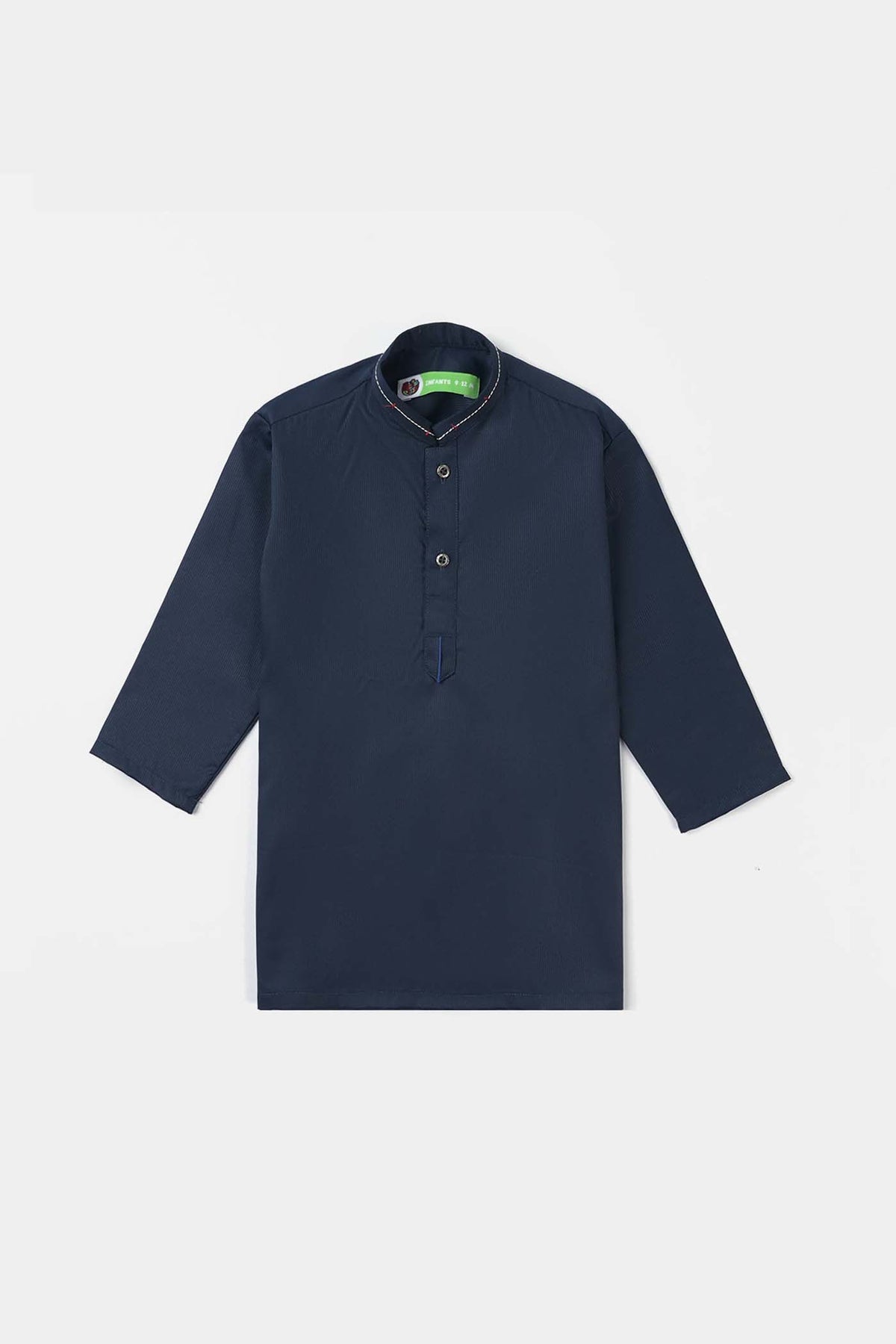 Experience elegance in every stitch with this two-piece suit. The kurta features collar detailing, full-length sleeves, and a straight hem. Paired with pajamas.