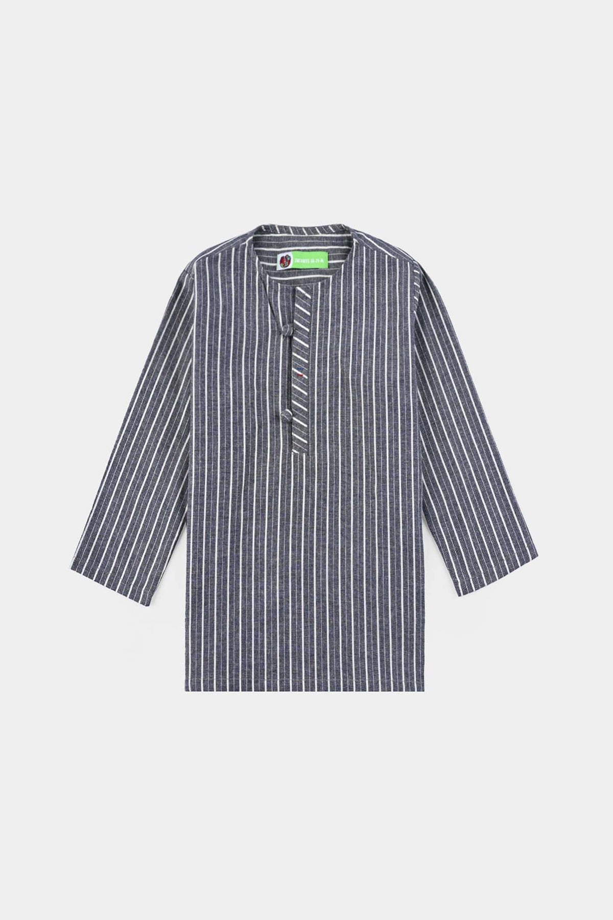 Infant Boys Yarn Dyed Basic Kurta (Loop Style)-GREY