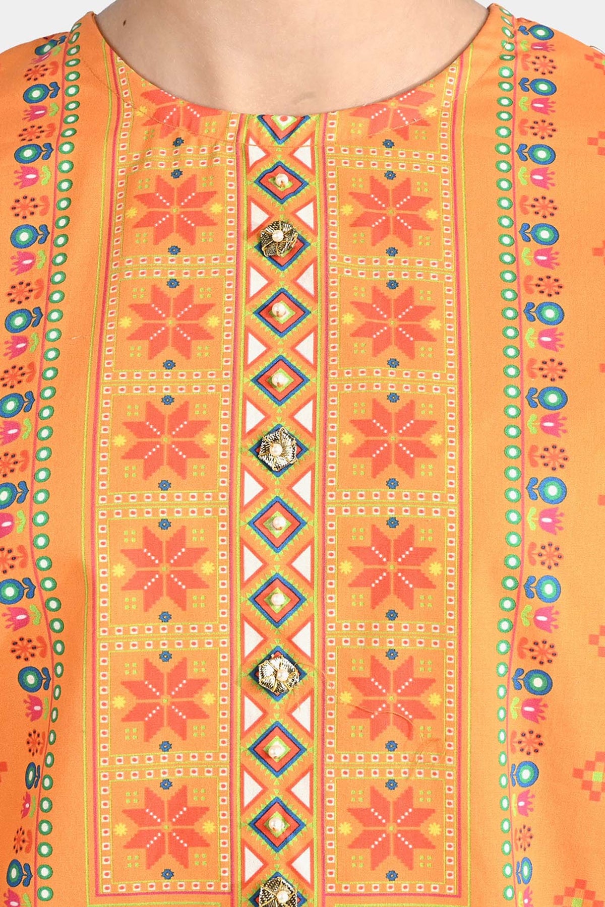 Girls Cotton Poplin Printed Jagmag-ORANGE