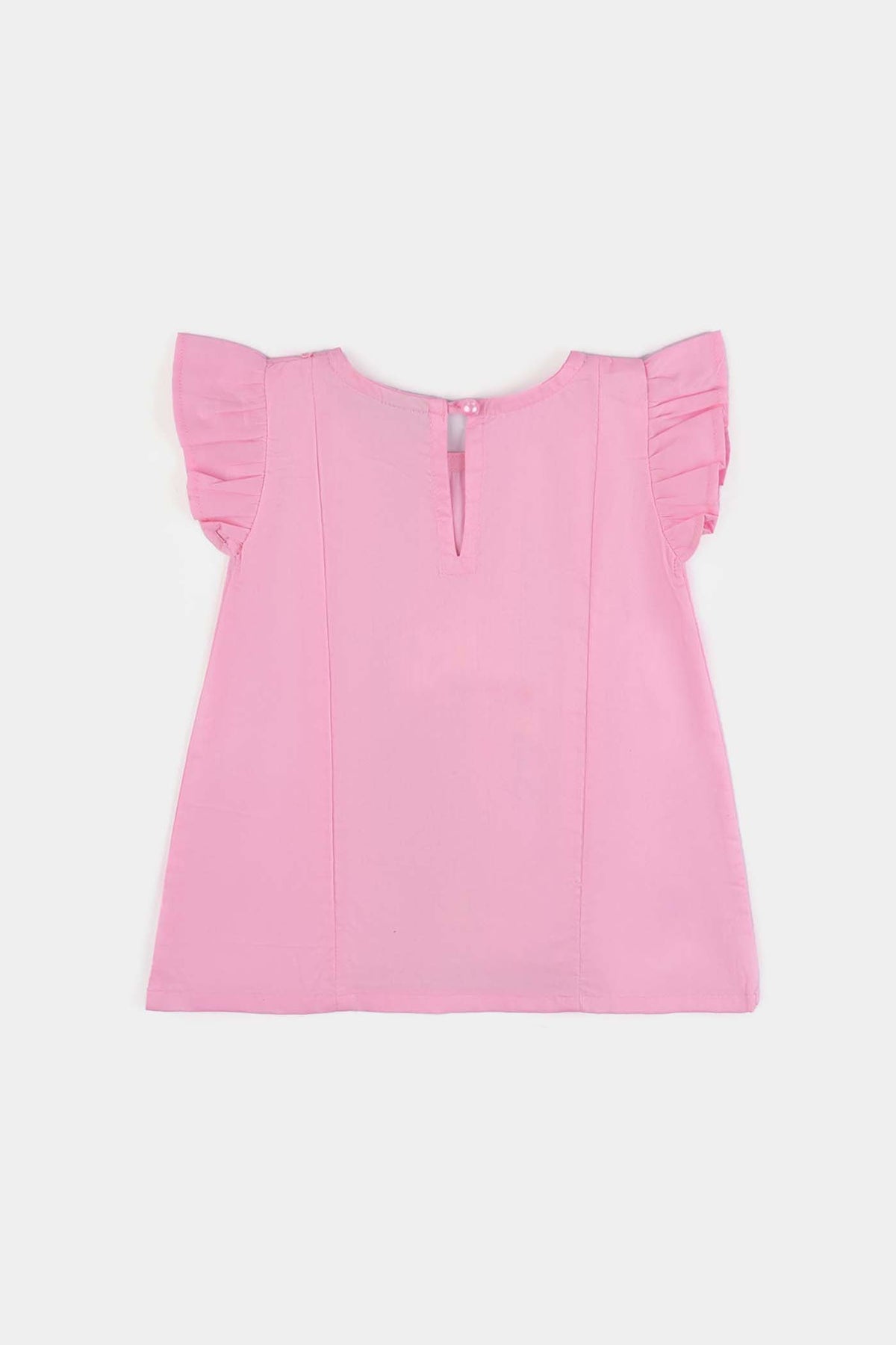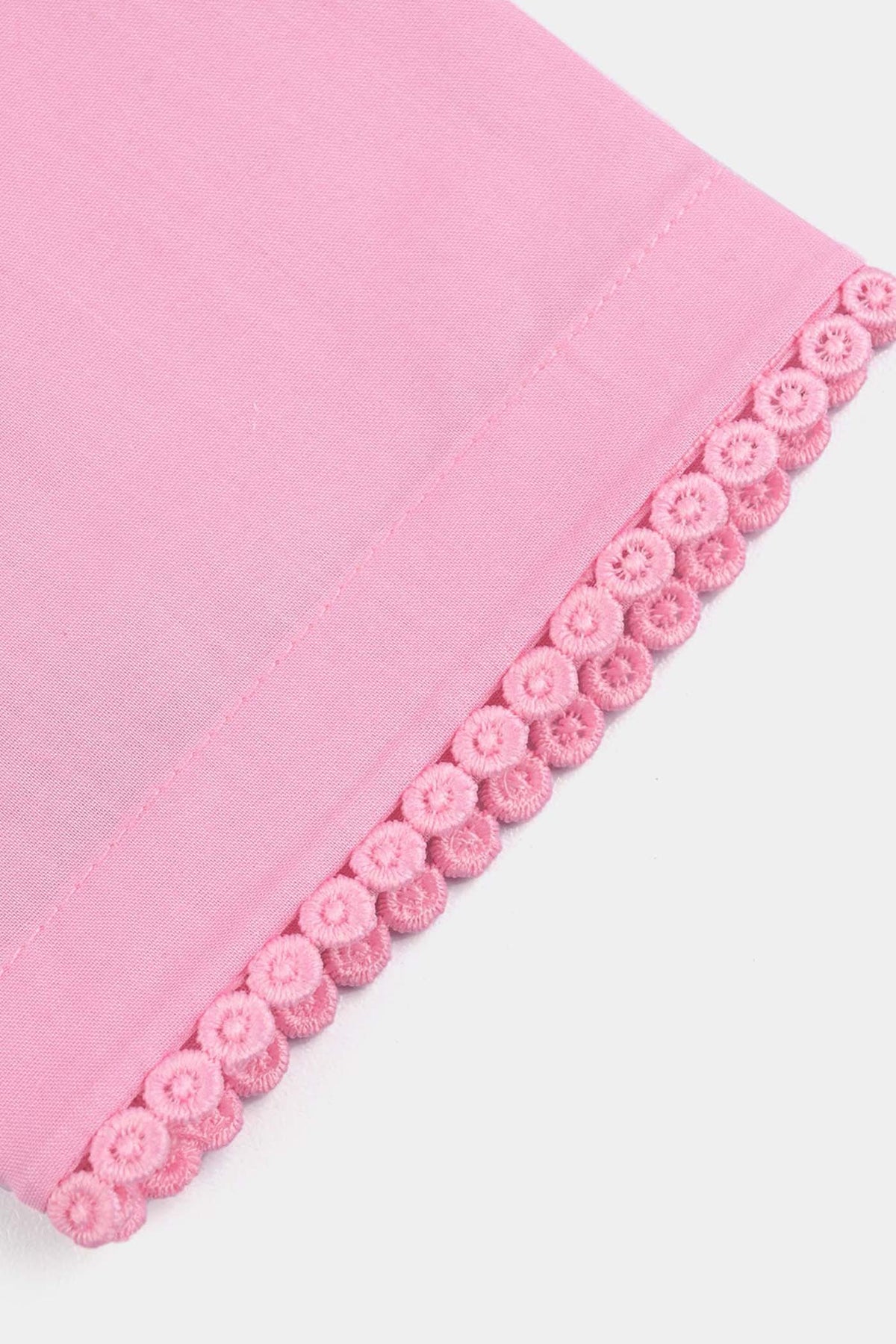 Embrace the lively spirit of the season with this pretty two-piece set. The panel shirt has ruffled armholes and dancing doll embroidery that captures the charm of innocence. The top is paired with straight trousers for an elegant look.