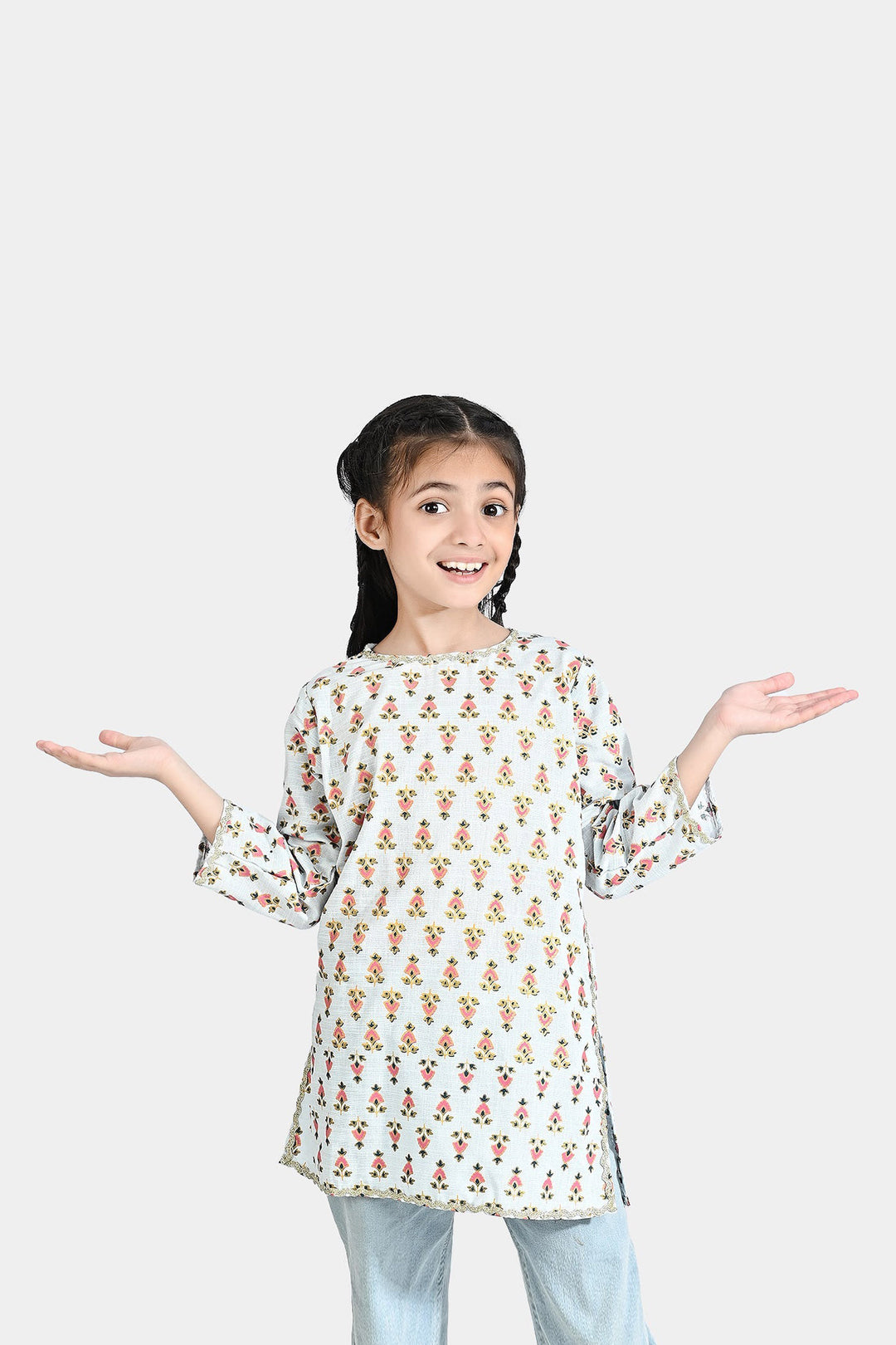 Girls Printed Kurti Chin Boti -2-LIGHT BLUE