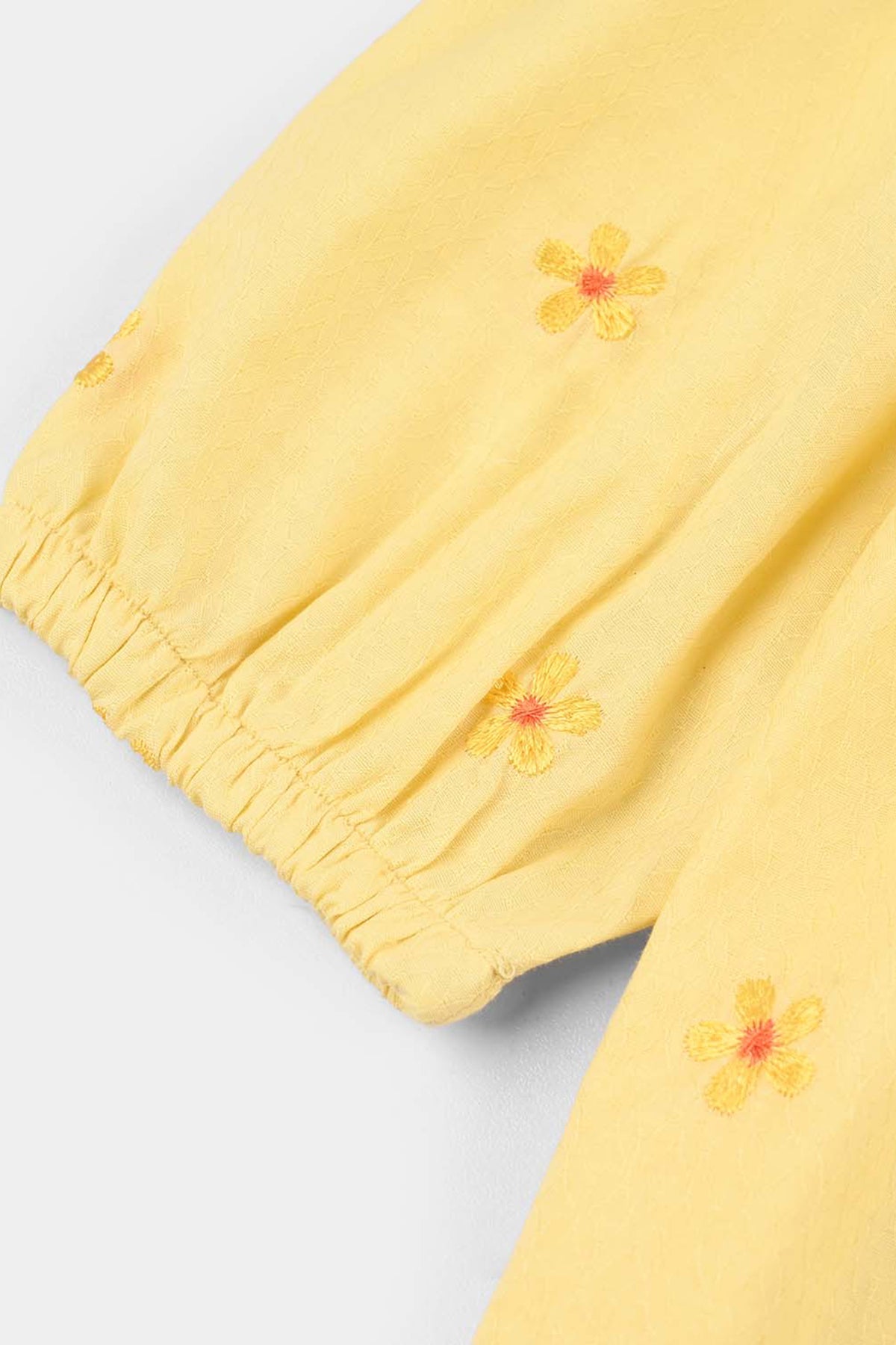 Bachaa Party brings you the best price Girls Jacquard Emb Frock Flowers-Yellow with express shipping all over Globe.