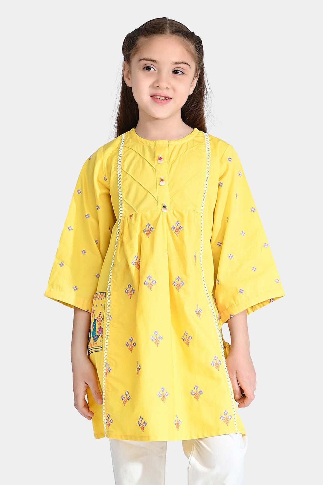 Girls Cotton Poplin Emb Kurti Pleated