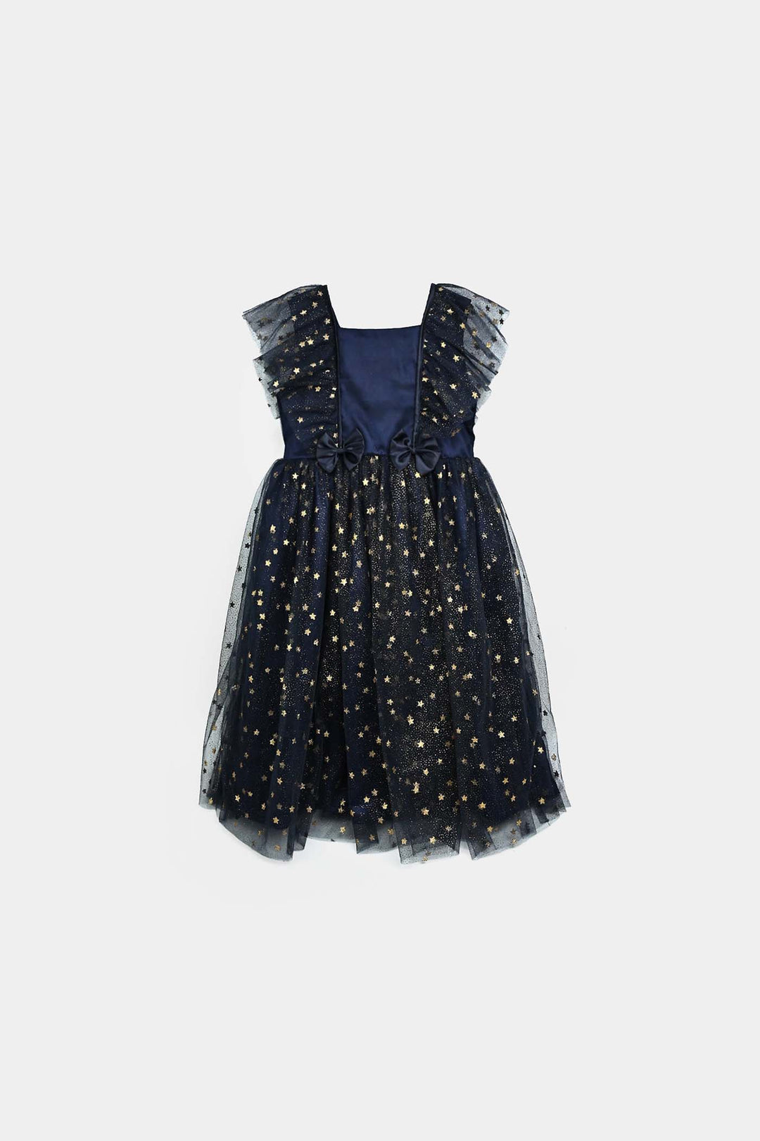 Girls Net Fancy Frock Glitter-NAVY