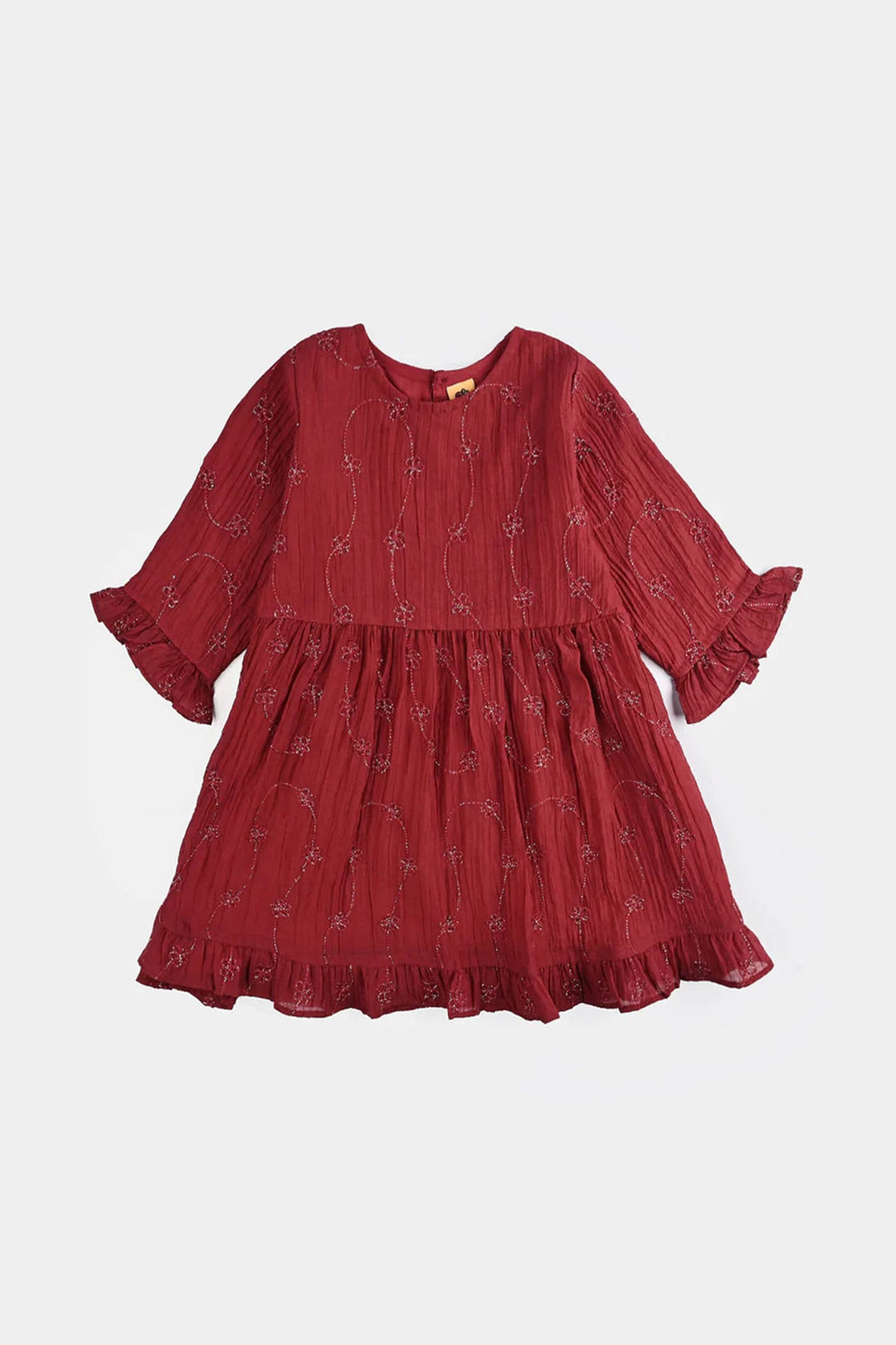 Girls Cotton Poplin Casual Frock Red Floral-Multi