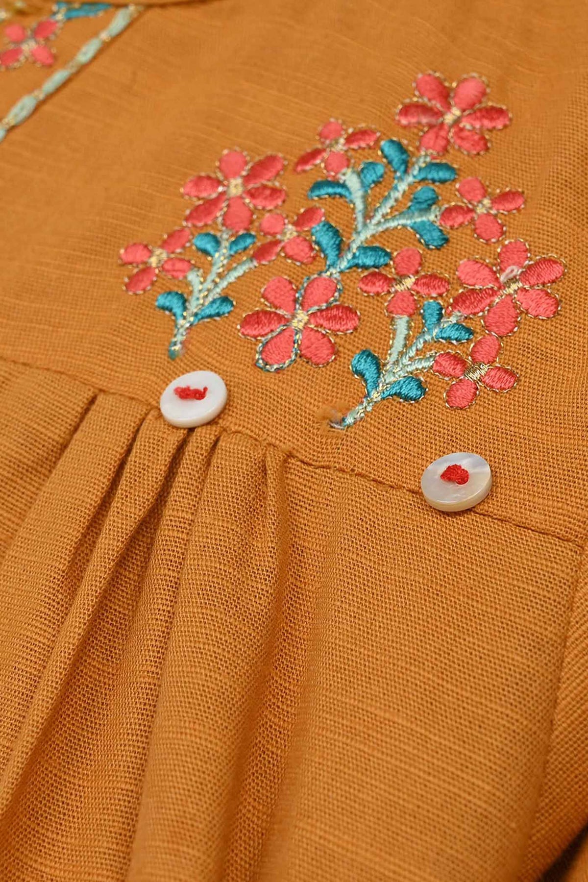 Bachaa Party brings you the best price Girls Cotton Slub Emb Kurti Ujala-Mustard with express shipping all over Globe.