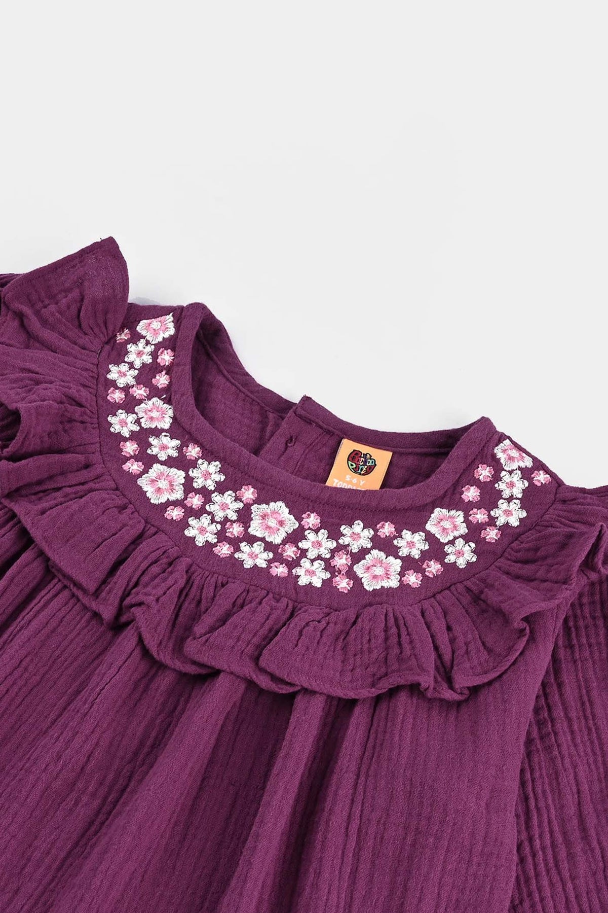 Embrace everyday elegance with this co-ord set. The shirt features beautiful yoke embroidery and ruffles. Completing the look with staright trousers.