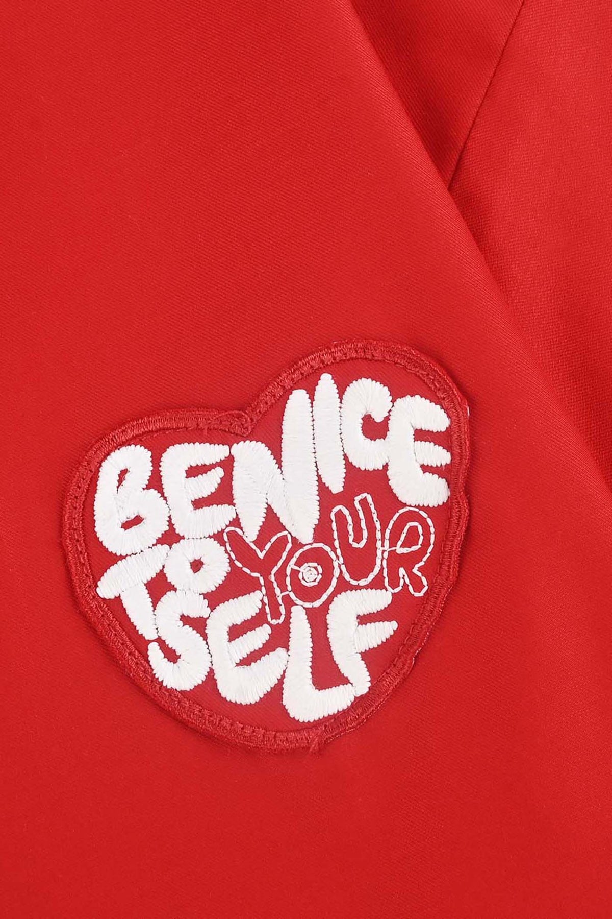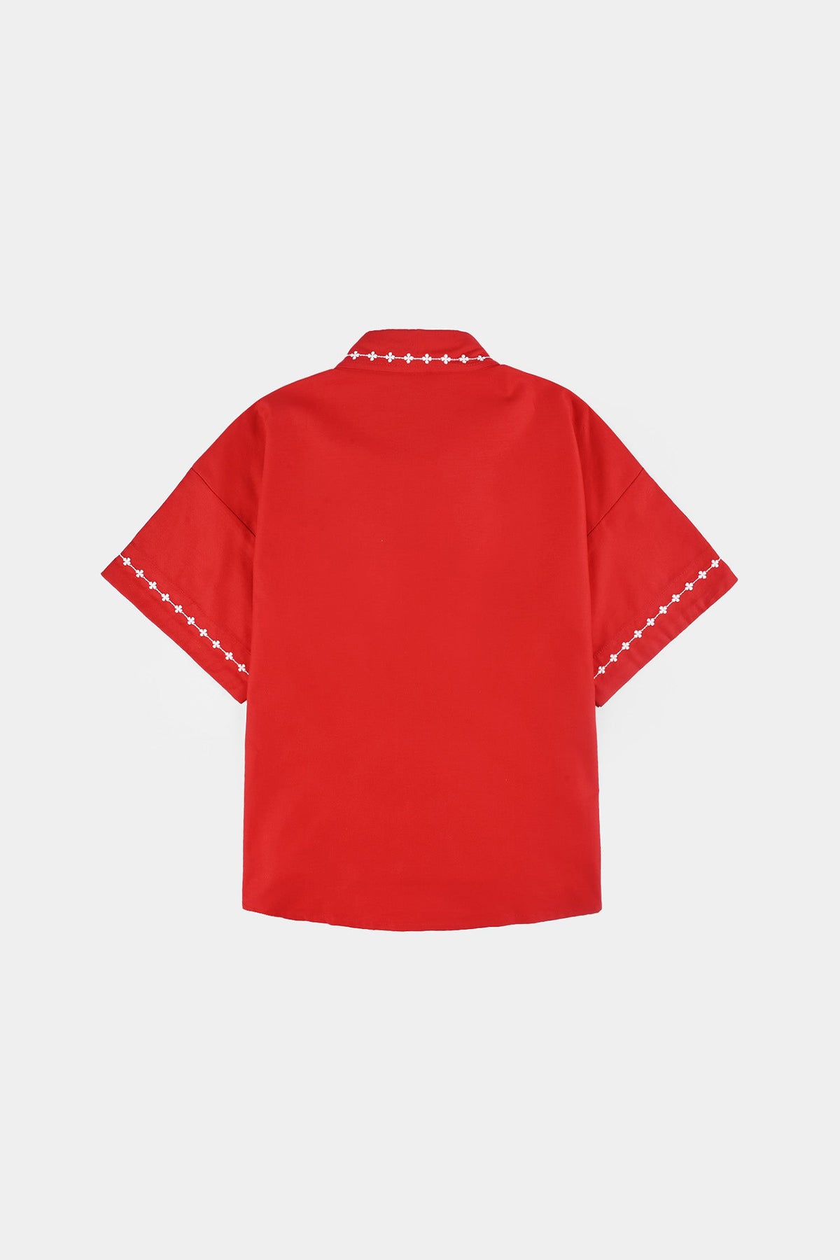 Girls Cotton Twill Emb Top Red Love-RED
