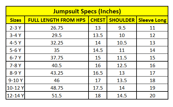 SIZE CHART NOTE: Please allow 0.5 inch +/- tolerance due to manual measurement