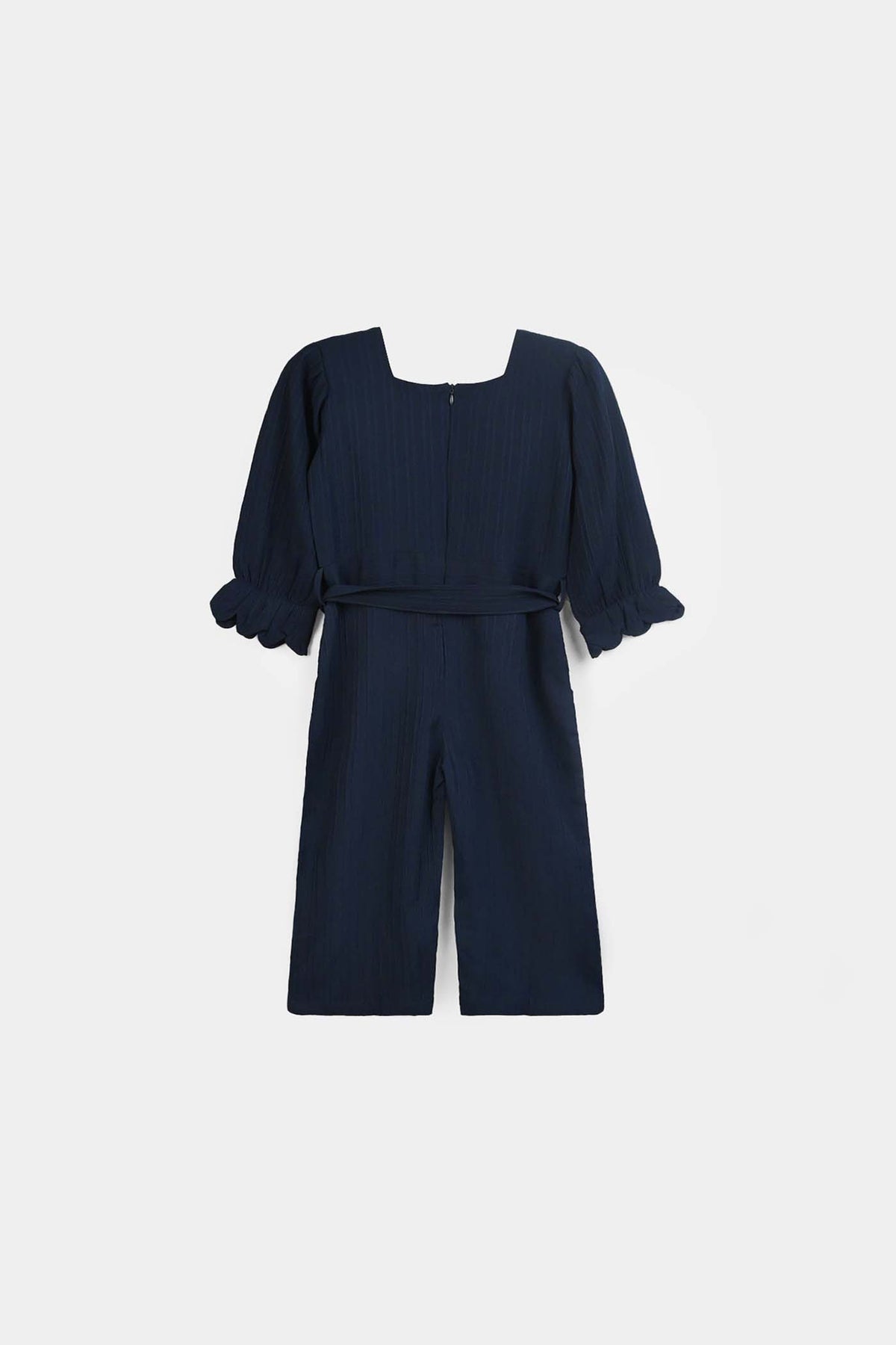 Girls Poly Crinkle Emb Jumpsuit Hazel-Navy Blue