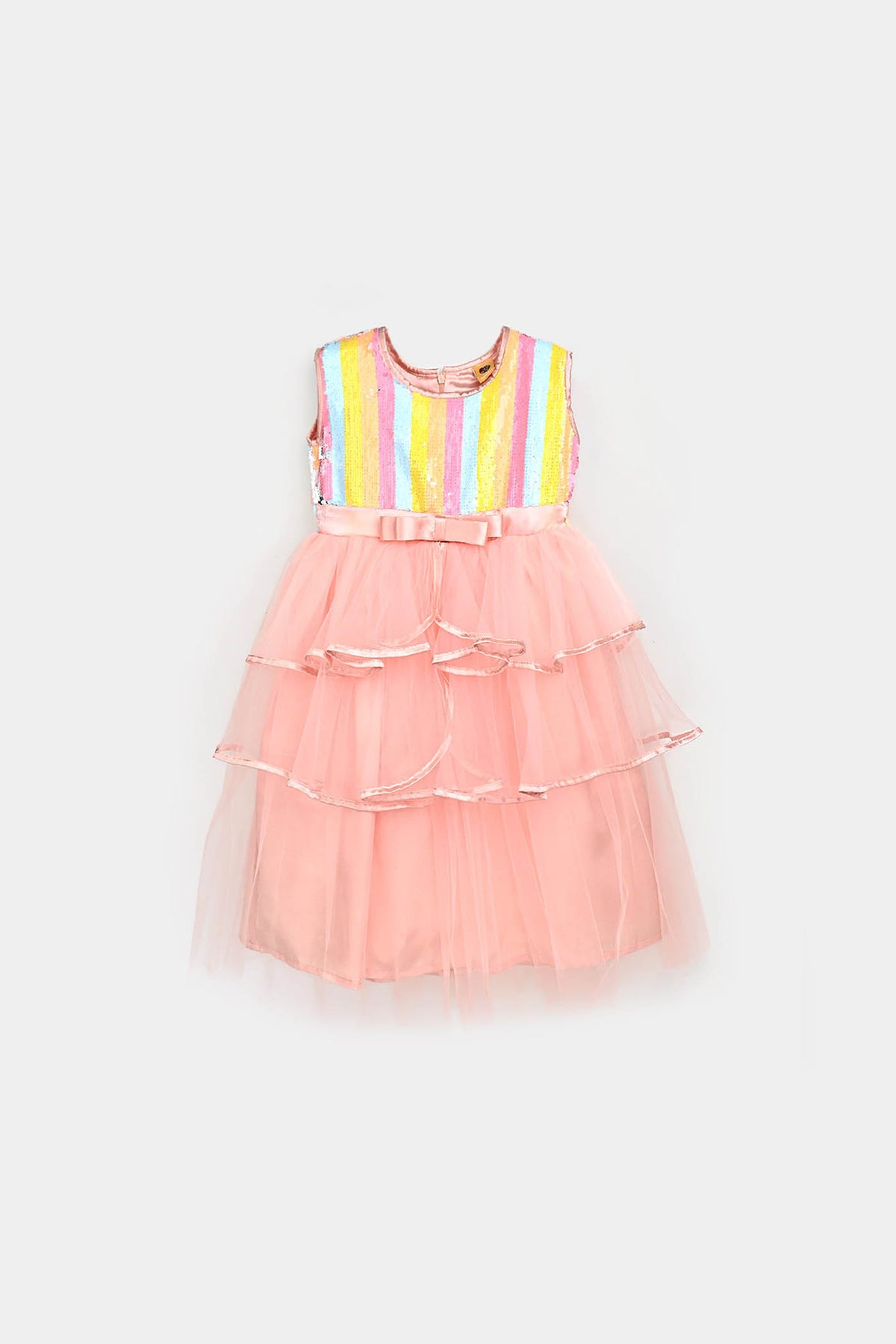 Girls Sequence Fancy Frock Multi Layer-Multi