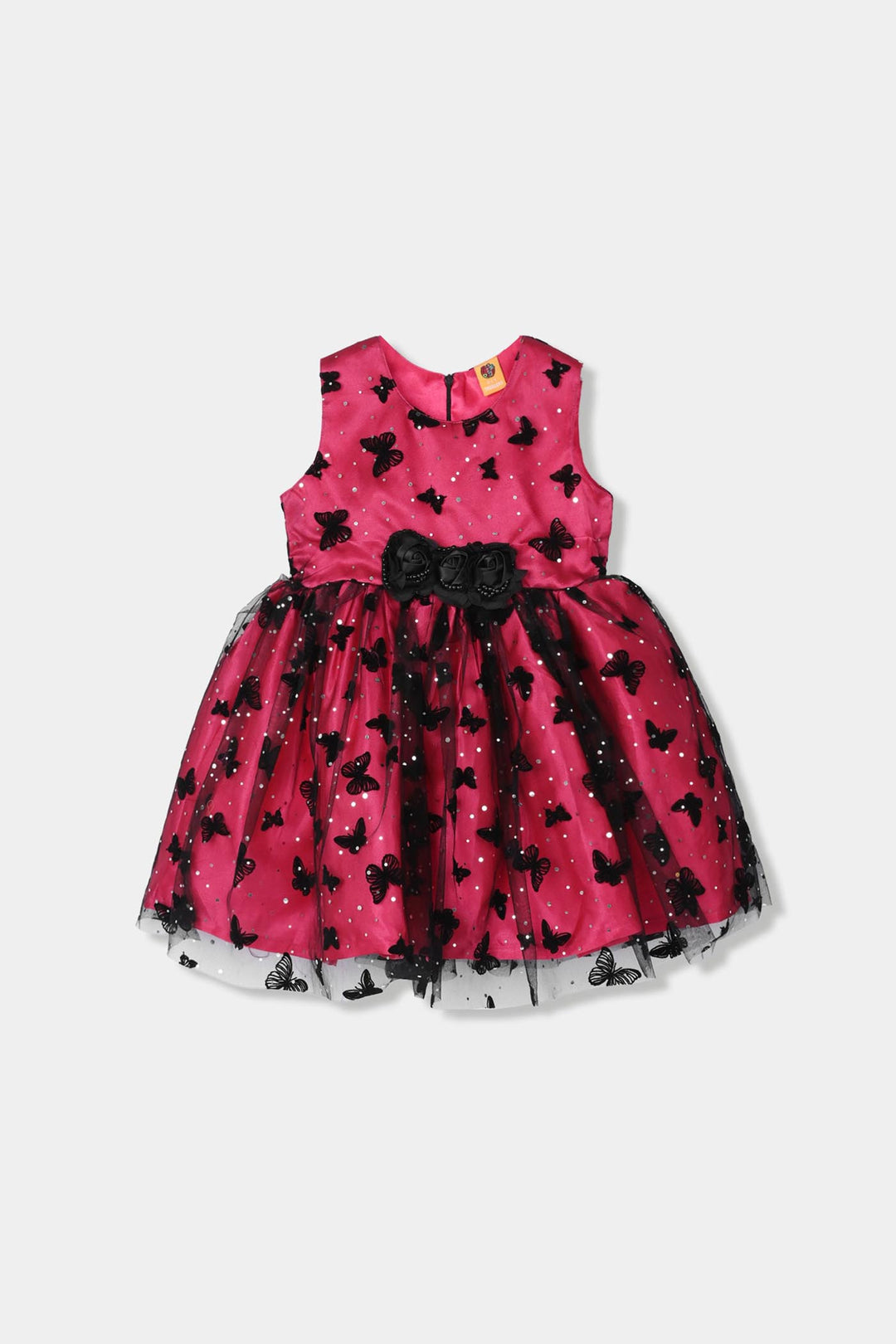 Girls Poly Twill Printed Kurti - Shocking Pink