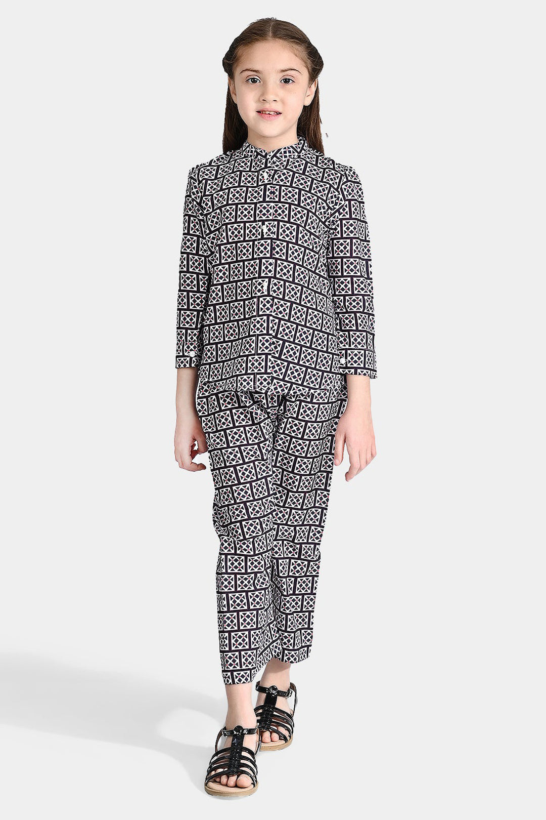 Girls Cotton Poplin Printed 2 Pcs Rangrez - BLACK
