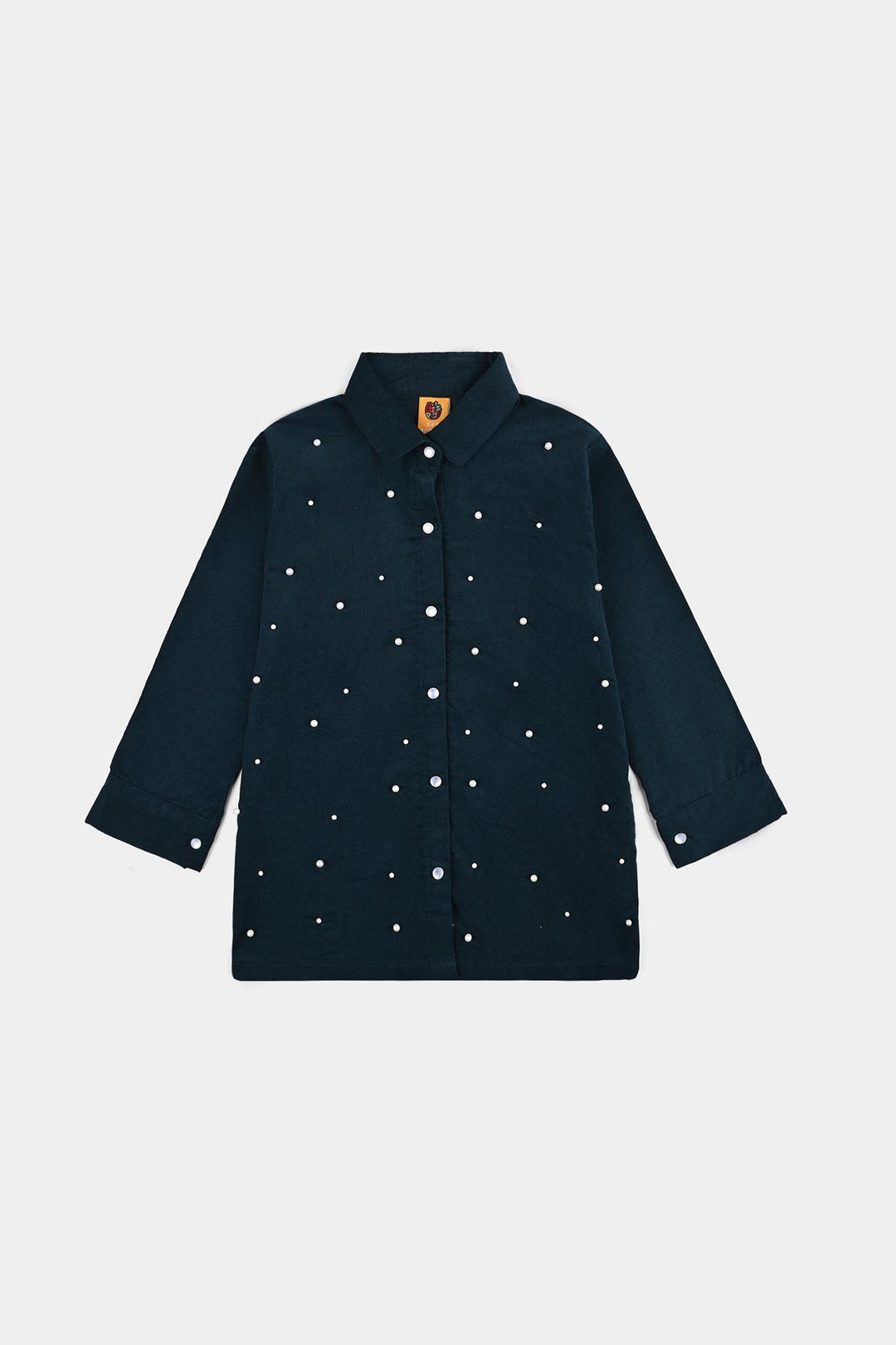 Girls Poly Crinkle Emb Top Bubble Up-Blue