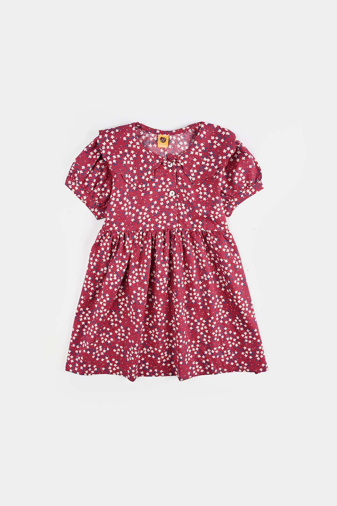 Girls Cotton Poplin Casual Frock Red Floral-Multi