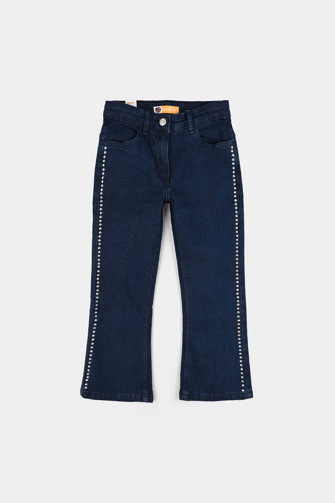 Girls Denim Stretch Pant Side Seams Studs-DARK BLUE