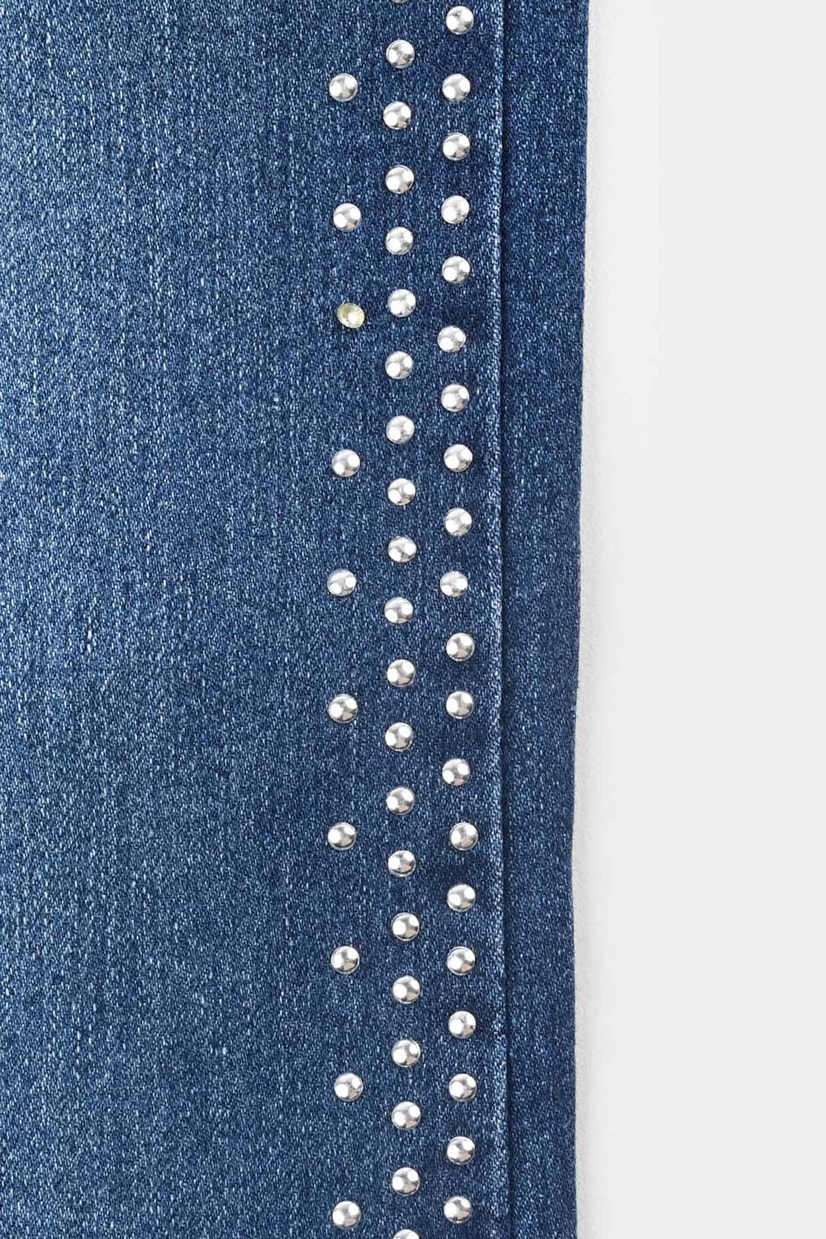 Girls Denim Stretch Jeggings Side Studs-Mid Blue
