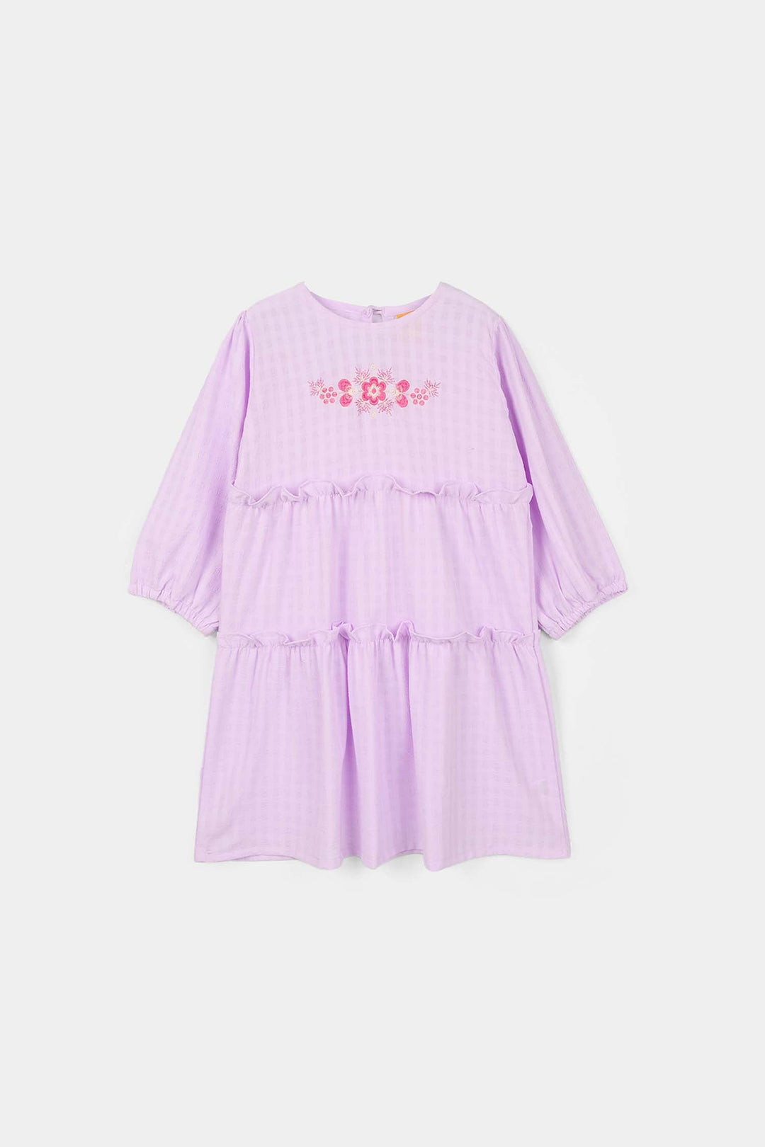 Girls Poly Crinkle Embroidered Frock - Lavender