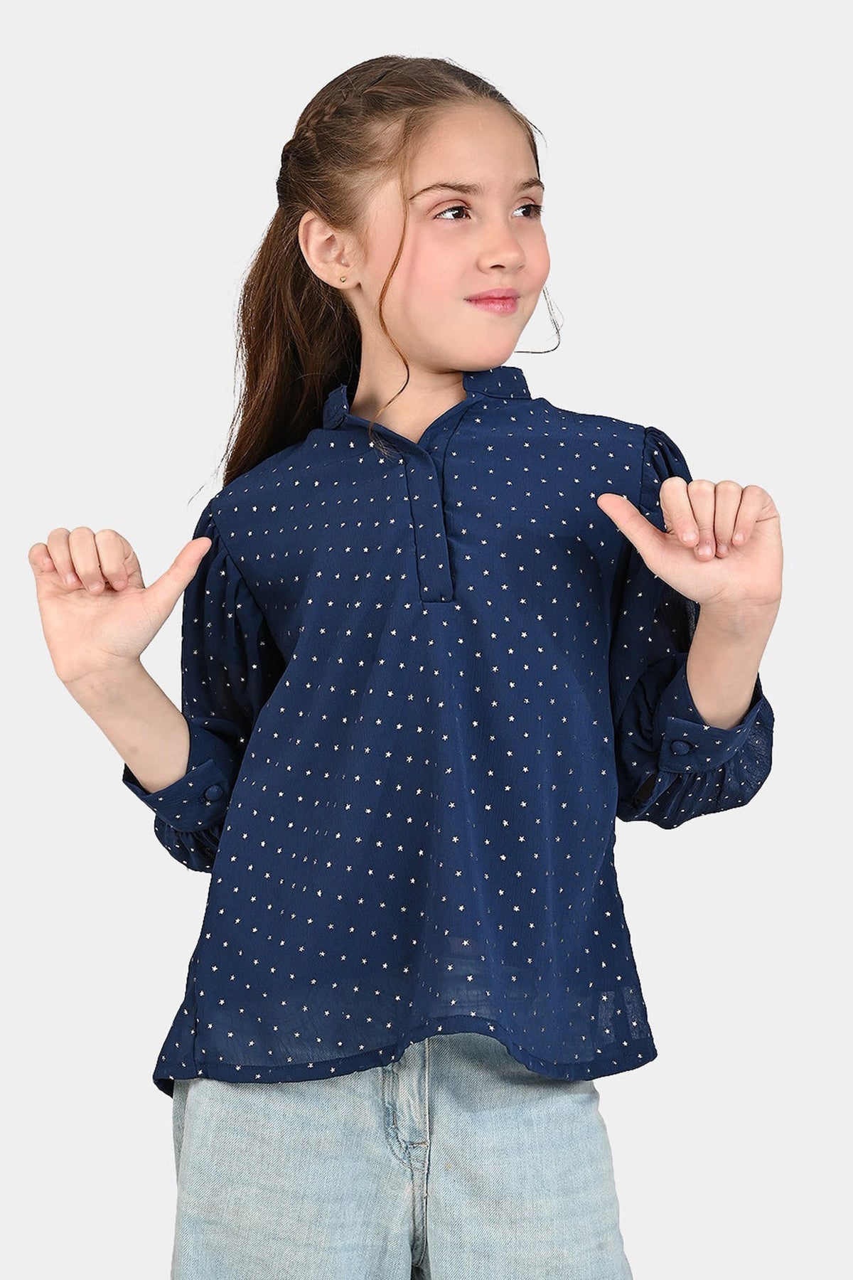 Girls Chiffon Casual Top Star-NAVY