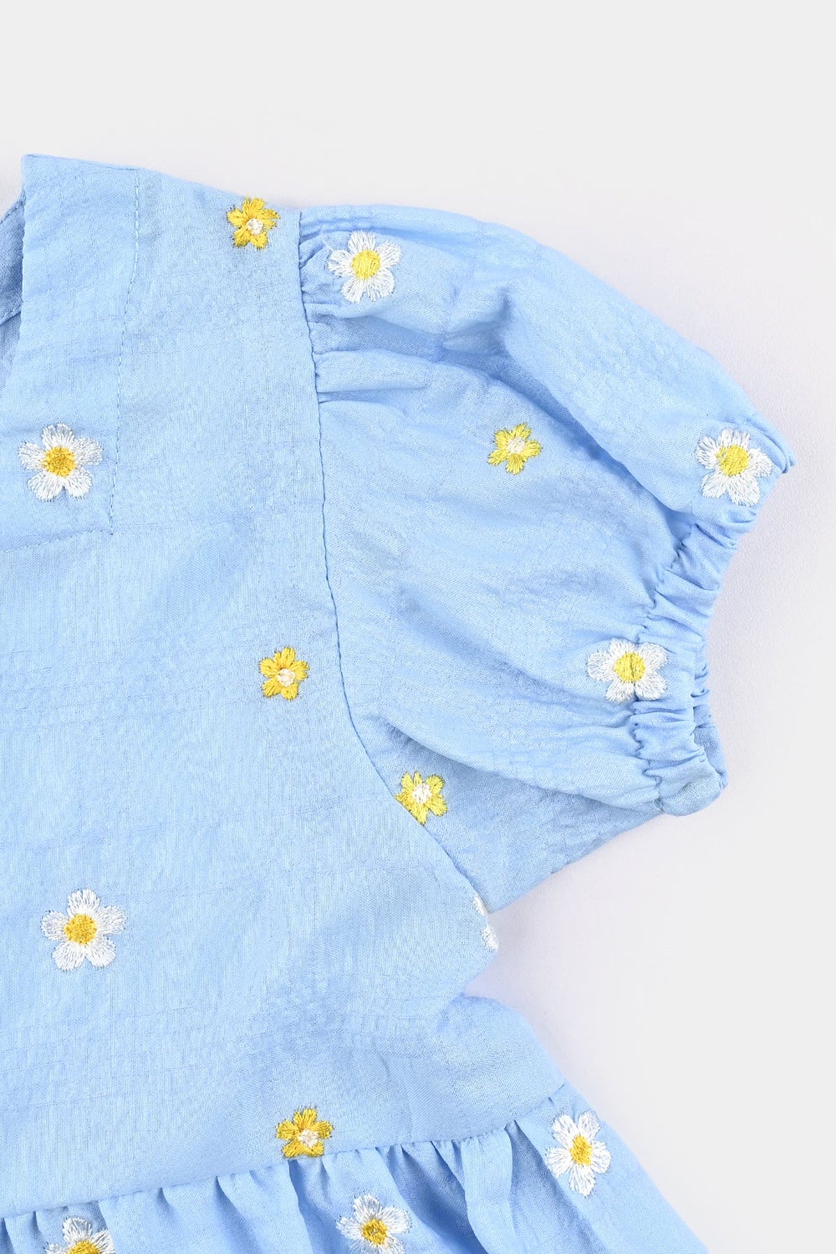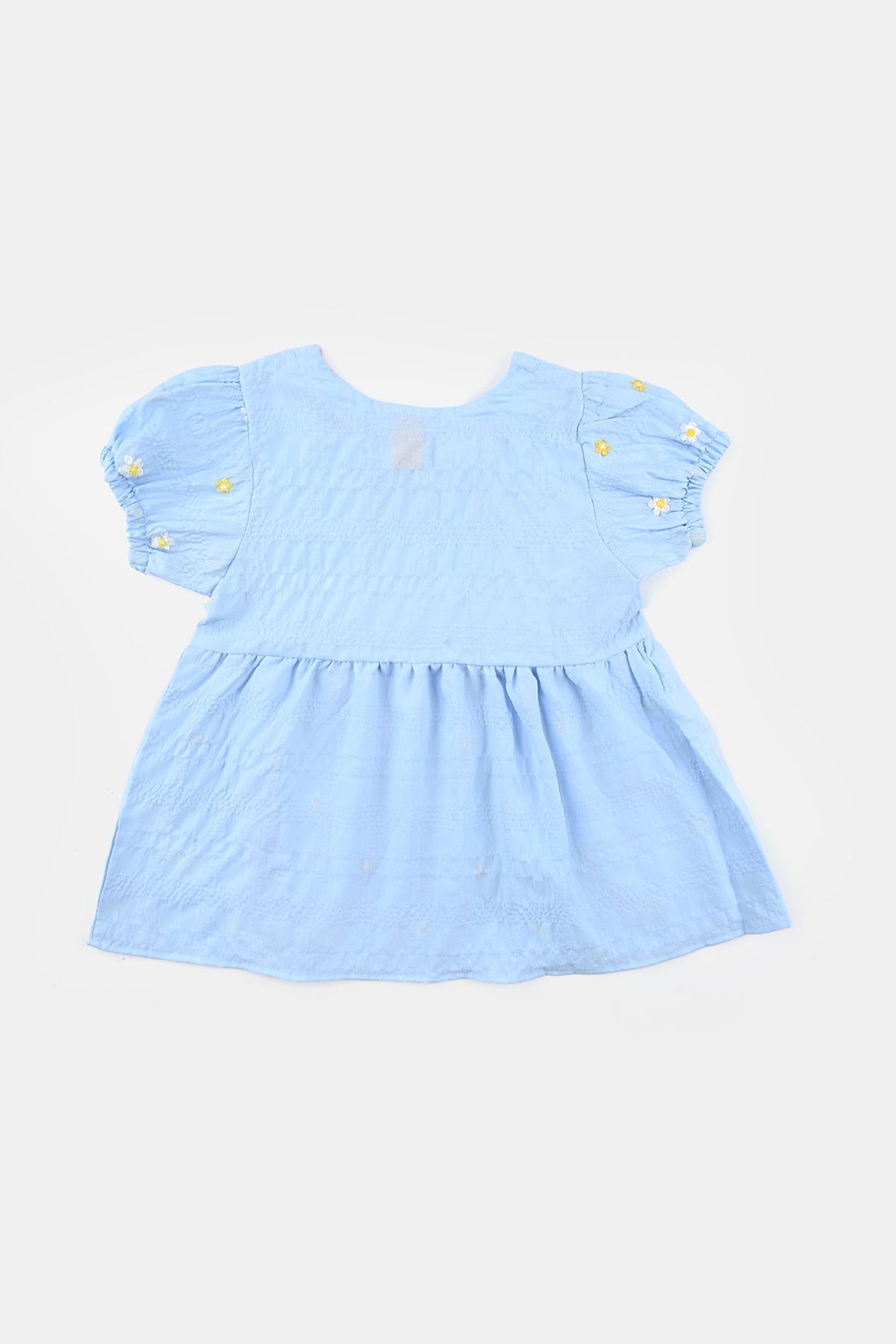 Girls Poly Crinkle Emb Top Bubble Up-Blue