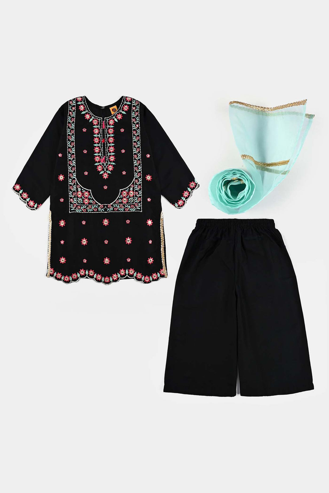 Girls poly cambric 3Pcs Phool Patti-BLACK