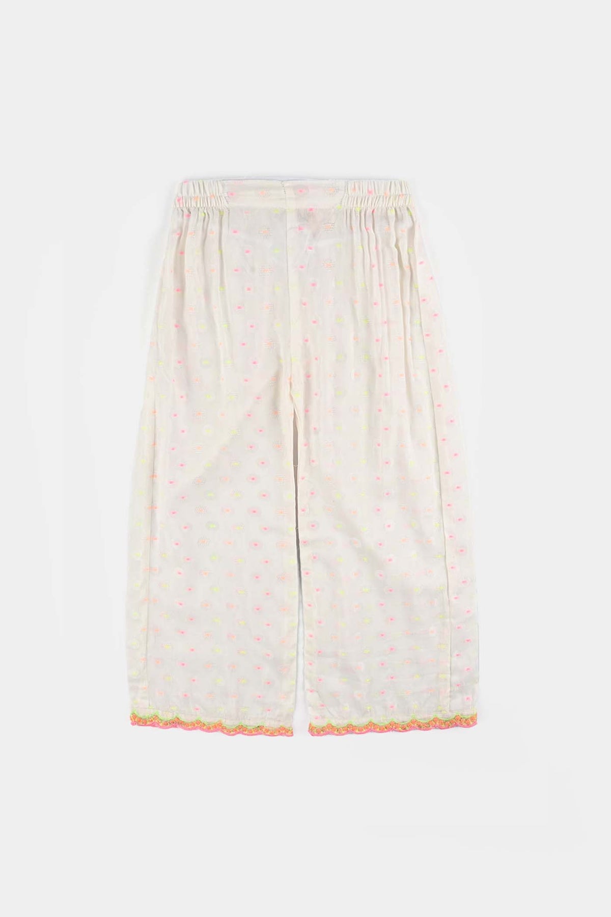 Elevate your style with this refreshing set featuring beautiful delicate embroidery along the neckline and sleeve border. Paired with culottes for a contemporary look.