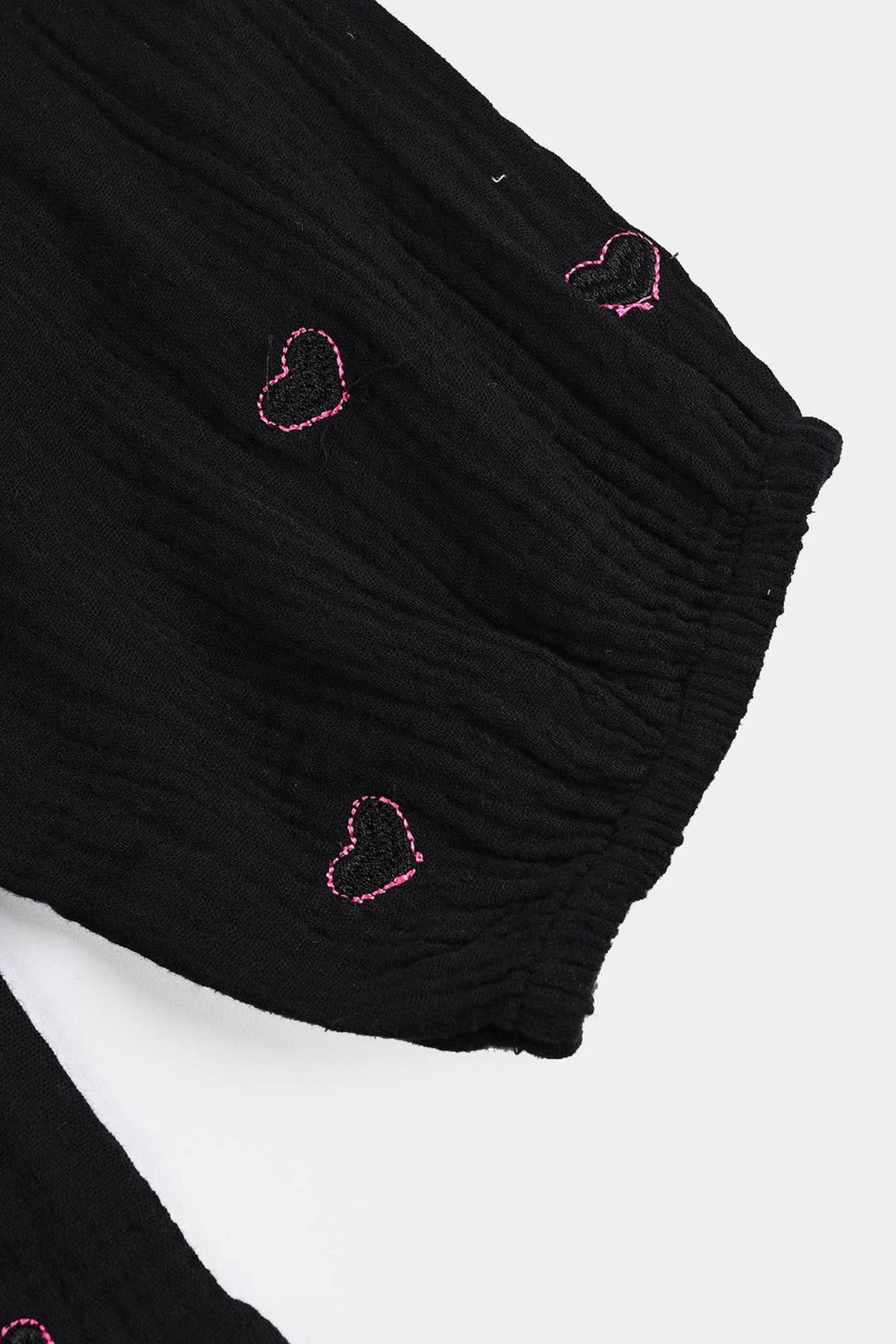 Bachaa Party brings you the best price Gilrs Emb Top Pink Hearts - BLACK Poly Crinkle with express shipping all over Globe.