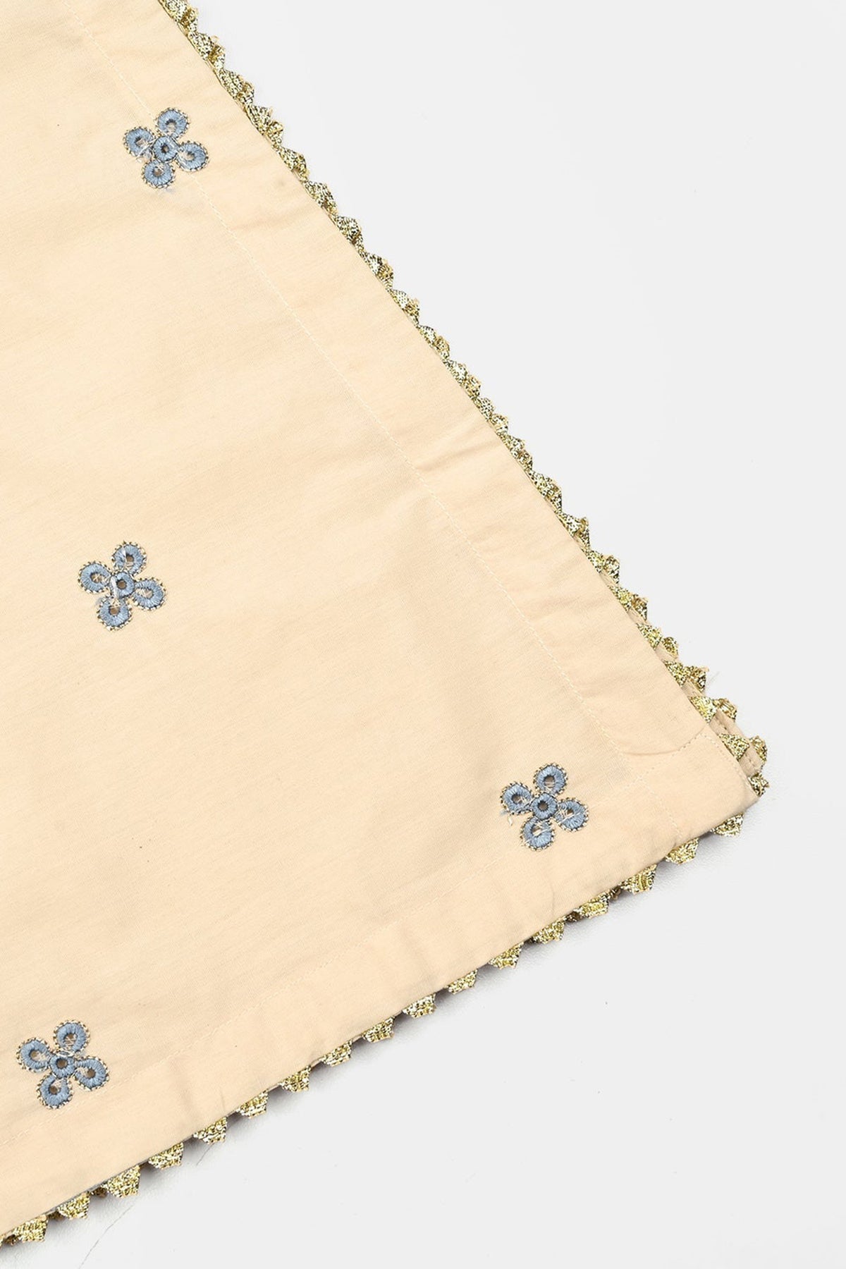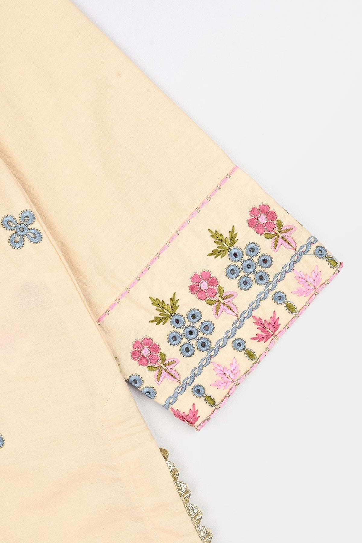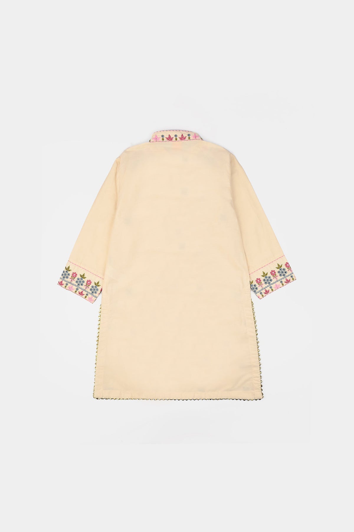 Girls Cotton Poplin Emb Kurti Chicken Kari-Cream