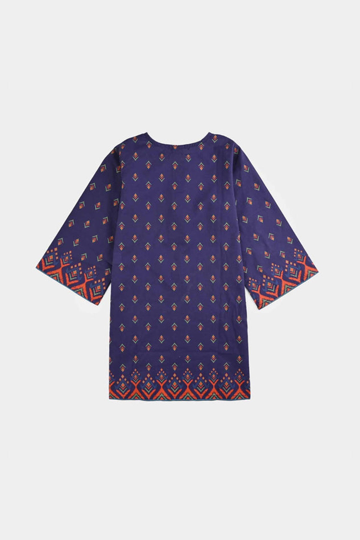 Girls purple cotton printed shirt featuring soft, breathable fabric, round neck, playful tassel detail, full sleeves, and straight fit for comfortable everyday wear.
