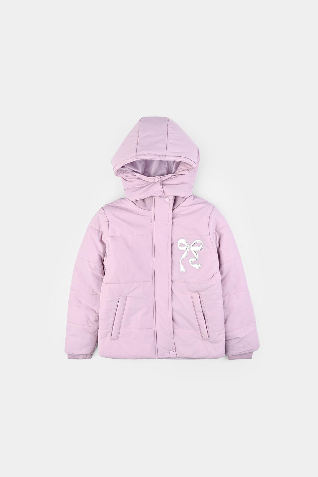 Girls Quilted Hooded Jacket F/S Bow - PURPLE