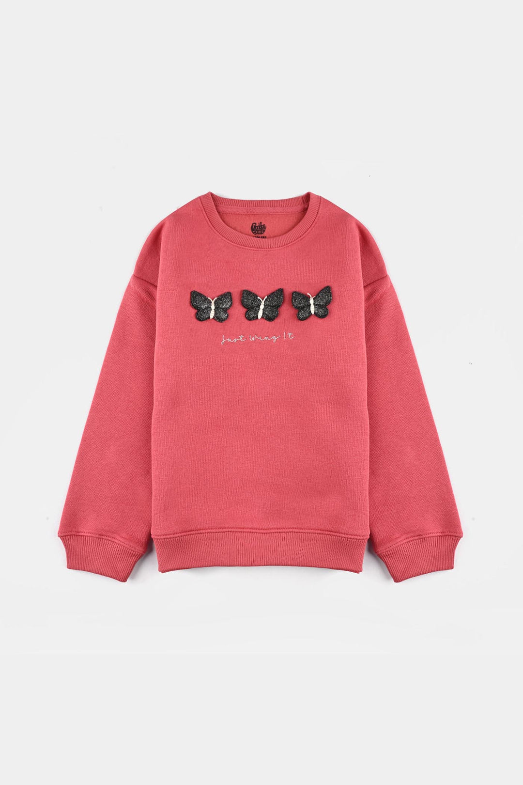 Girls Poly Crinkle Emb Top Butterfly-Pink