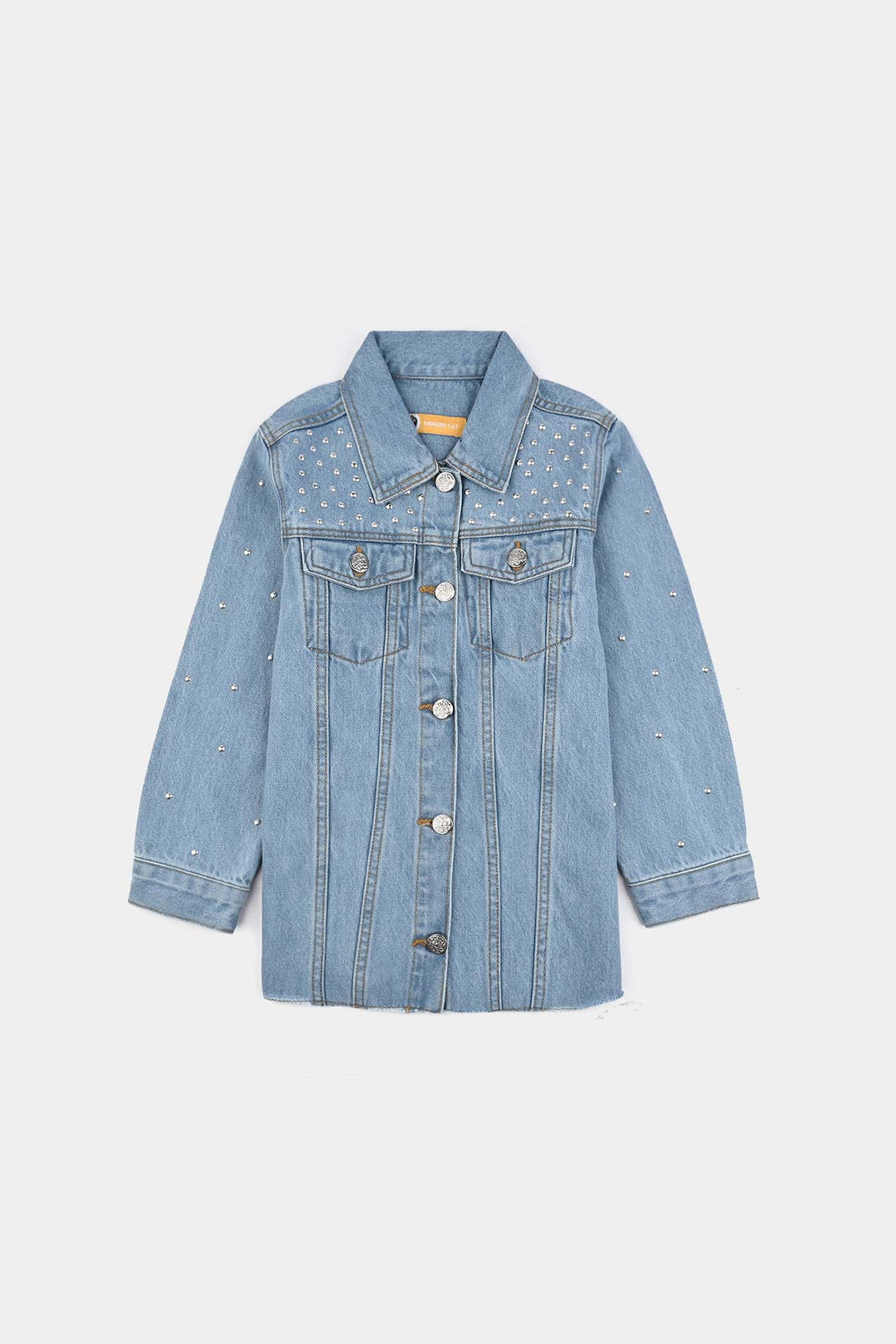 Girls Denim Stretch Woven Jacket Pearls-Light Blue