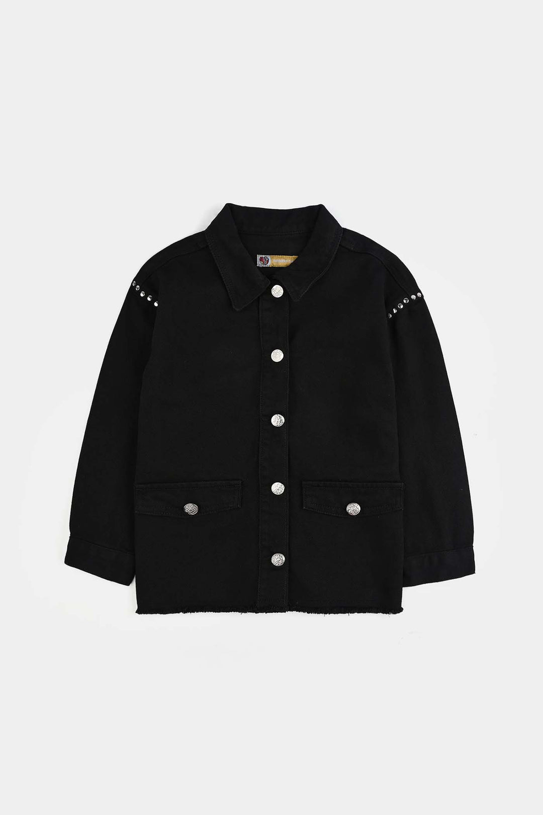Girls Denim Stretch Woven Jacket Studs-BLACK