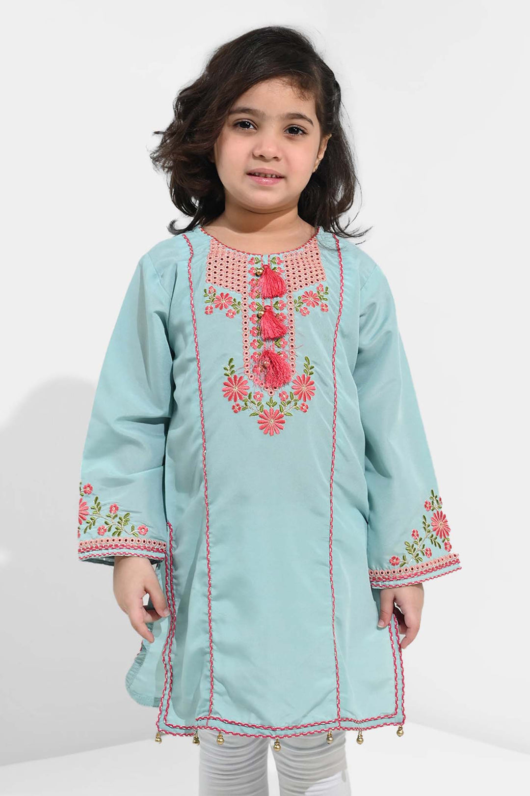 Girls poly cambric Emb Kurti Aqs-E-Bahar-Mint Green
