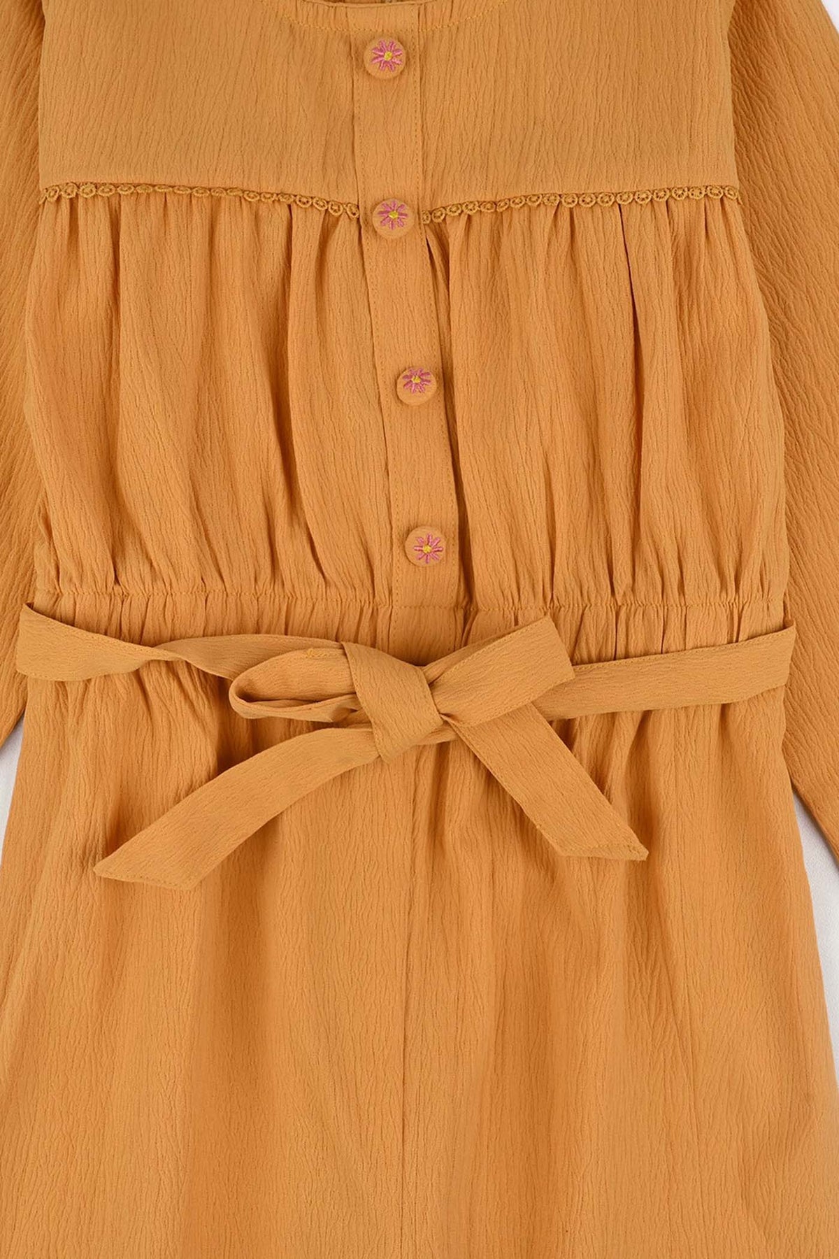Minimal yet stylish, this mustard cotton jumpsuit features dainty floral buttons, and bow at the front. Lightweight and breezy, it’s an effortless one-piece wonder for playful days.