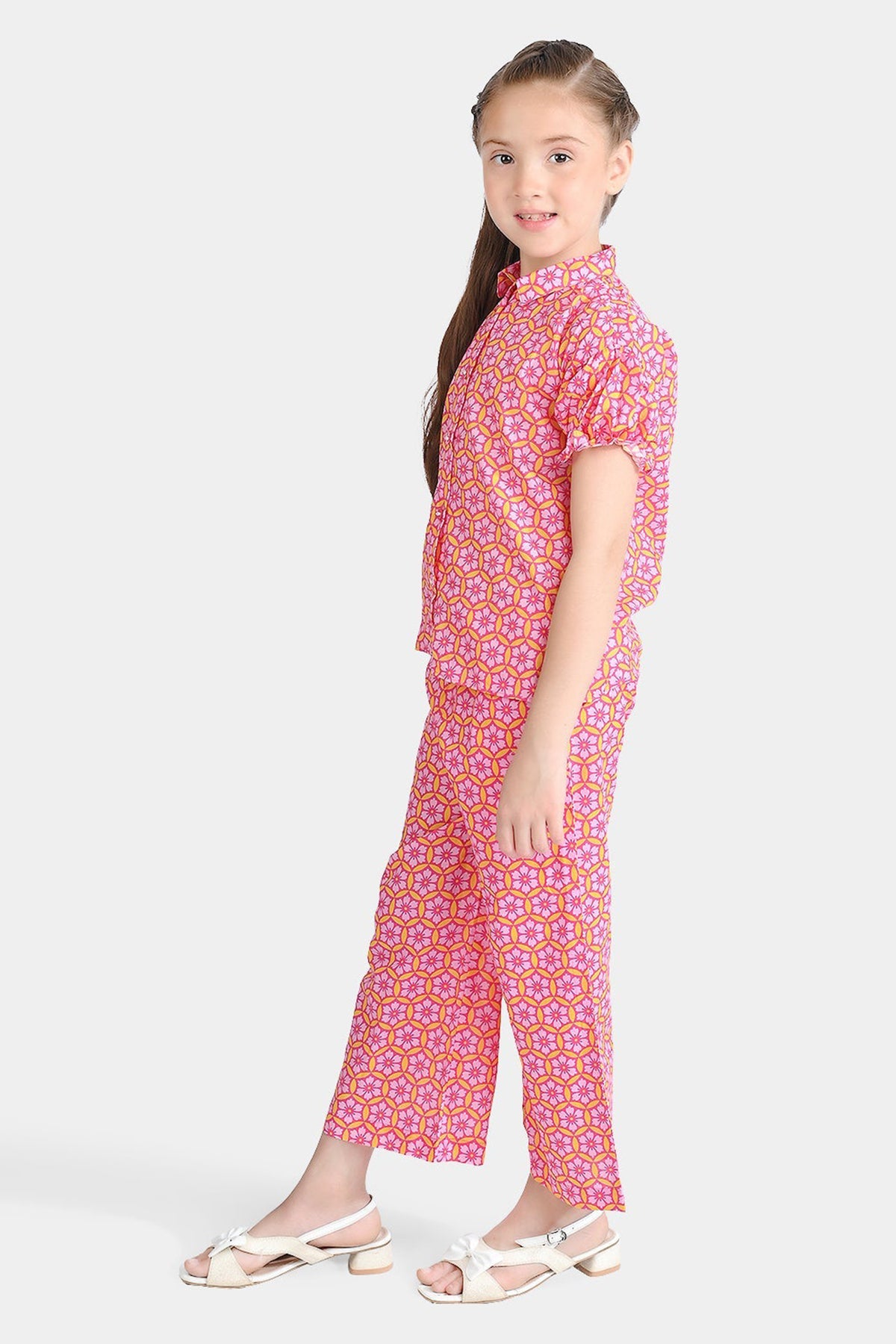 Bachaa Party brings you the best price Girls Cotton Poplin Co-Ord Set Pink Geometric-Pink with express shipping all over Globally.