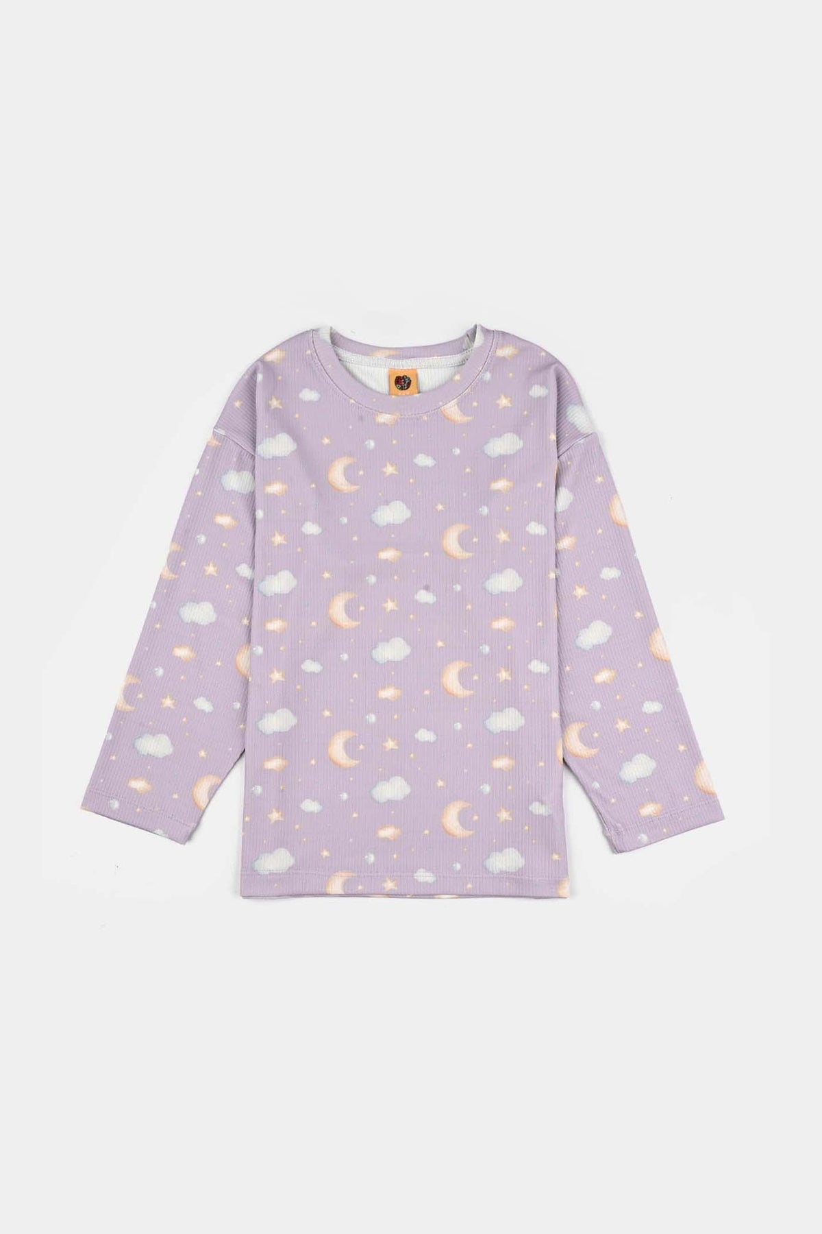 Who says nighttime can't be stylish? Features a t-shirt in full-length sleeves, paired with comfy pajamas.