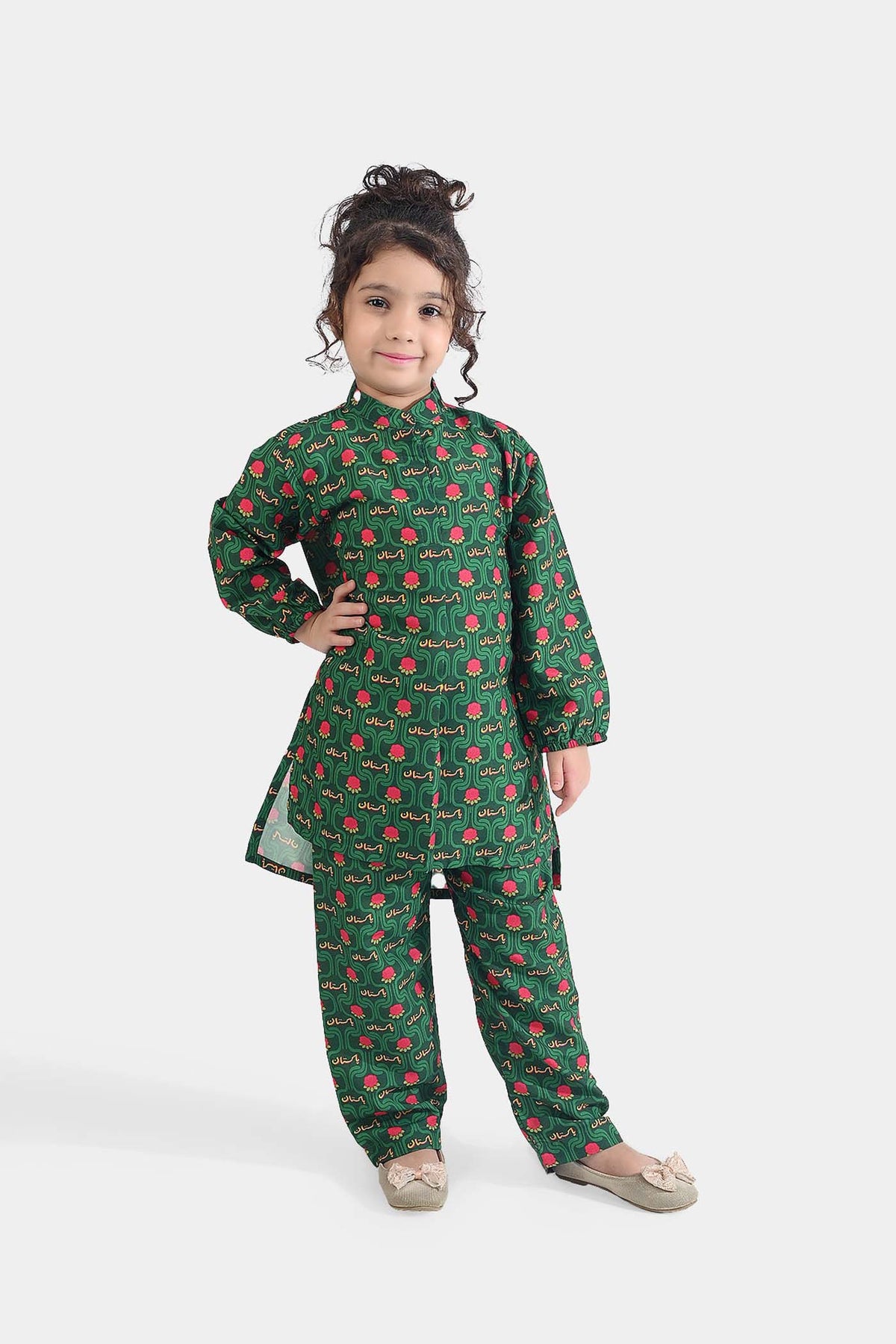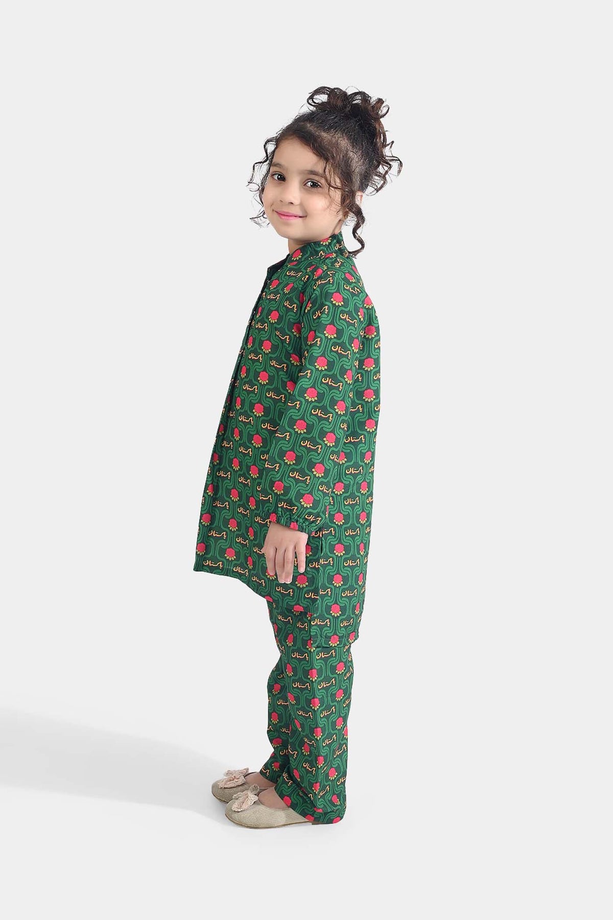 Girls Poly Net Printed 2Pcs Truck Flower Ind-GREEN