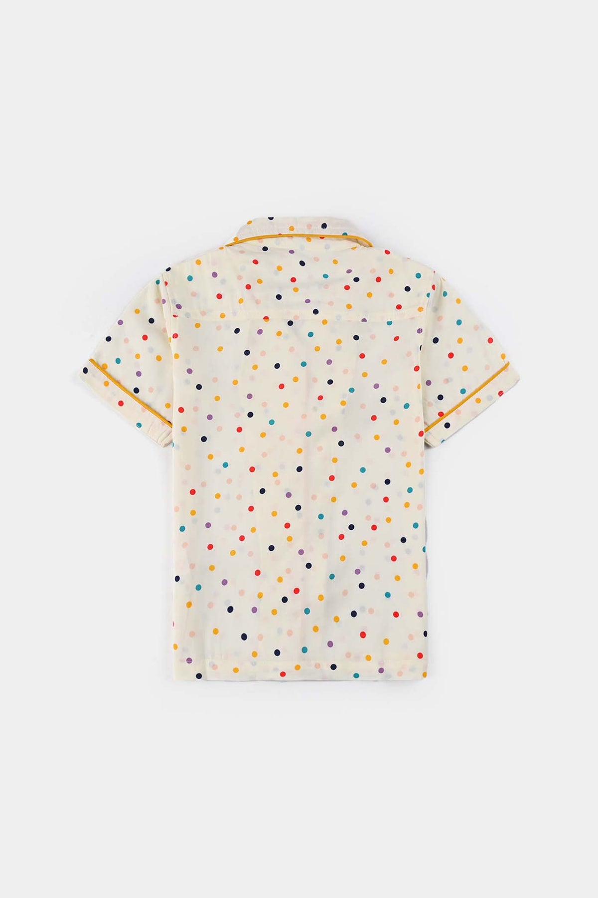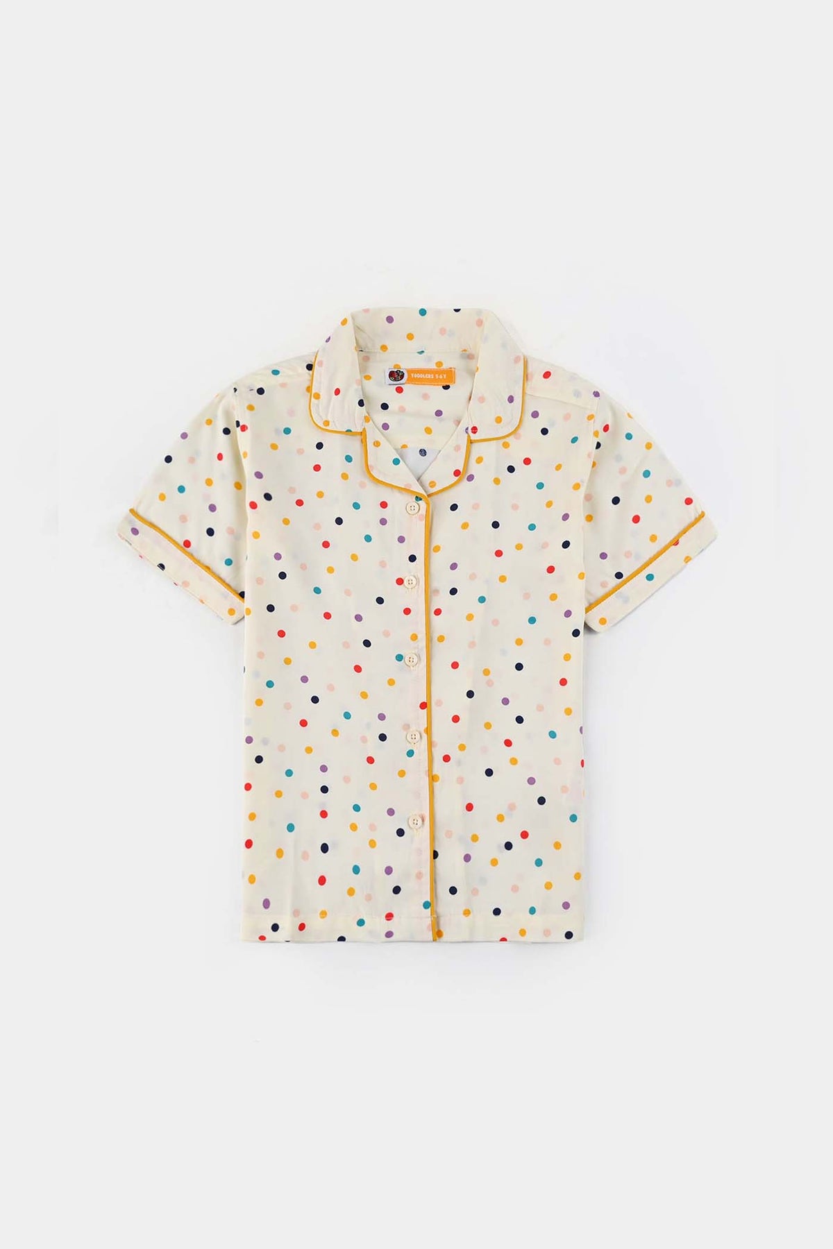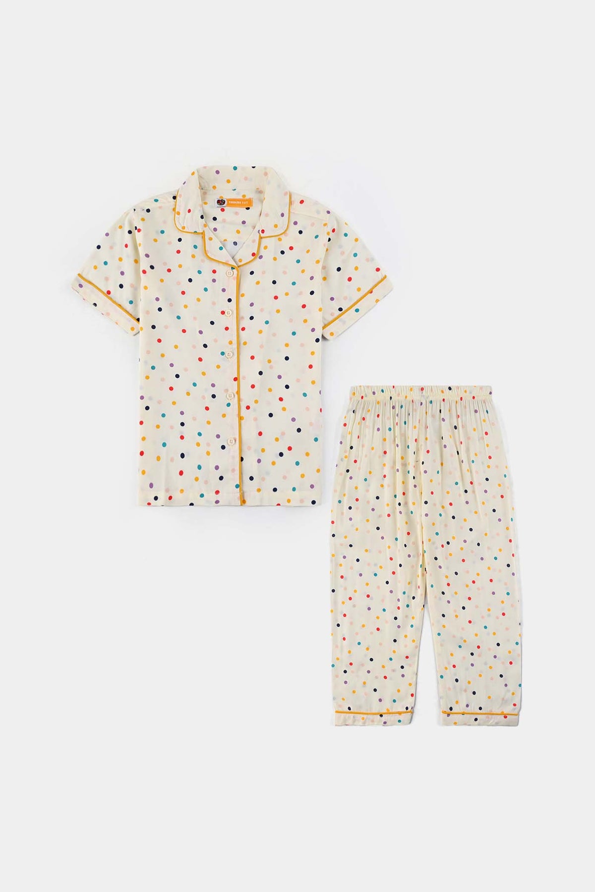 Make bedtime fun and fabulous! This fall-ready night suit features a playful print. The button-down shirt and matching trousers make for a cozy yet stylish combo she'll love slipping into. Perfect for dreamy nights and lazy weekend mornings.