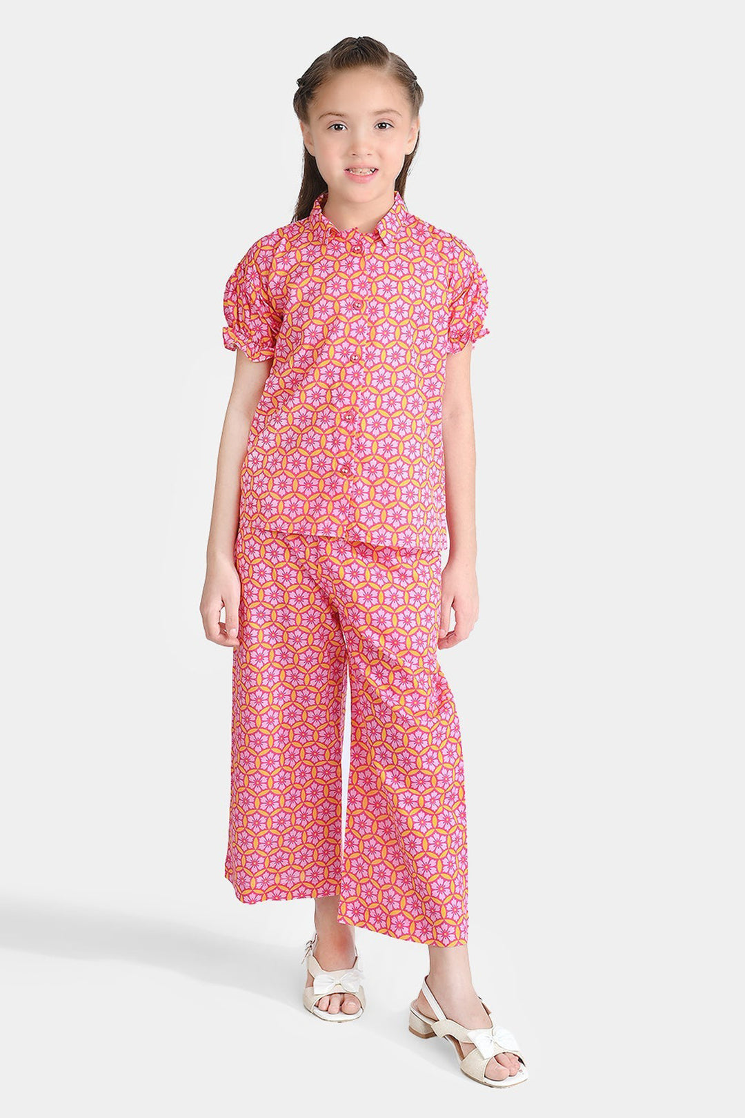 Girls Cotton Poplin Co-Ord Set Pink Geometric-Pink