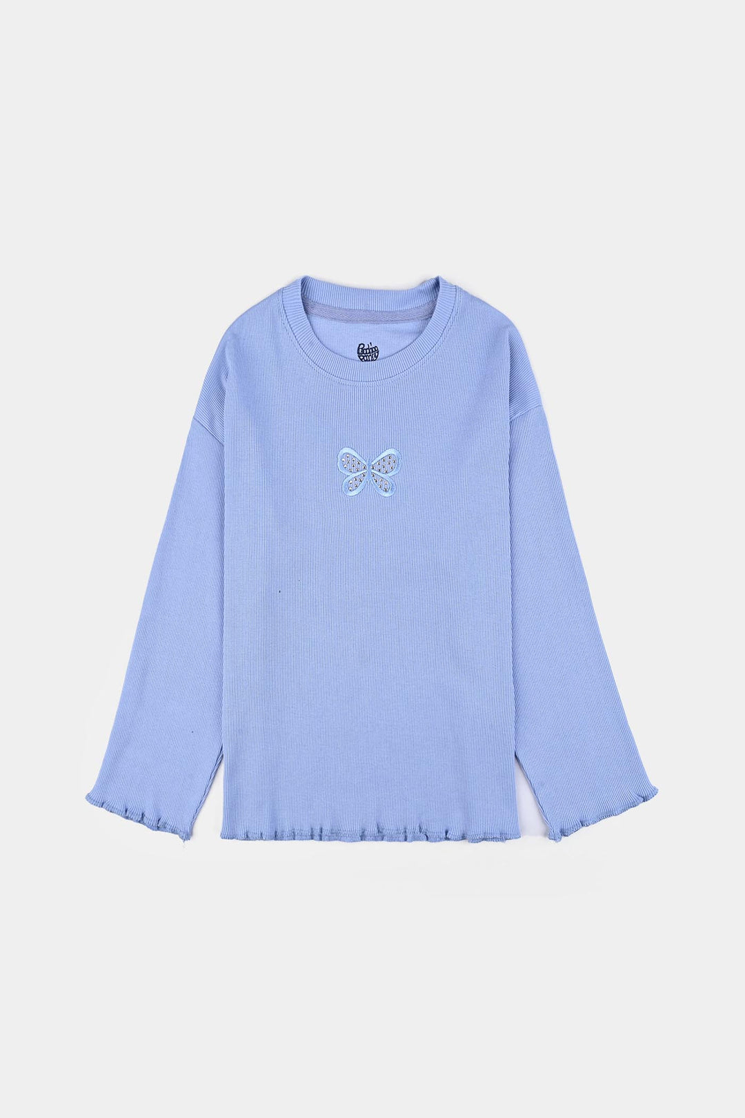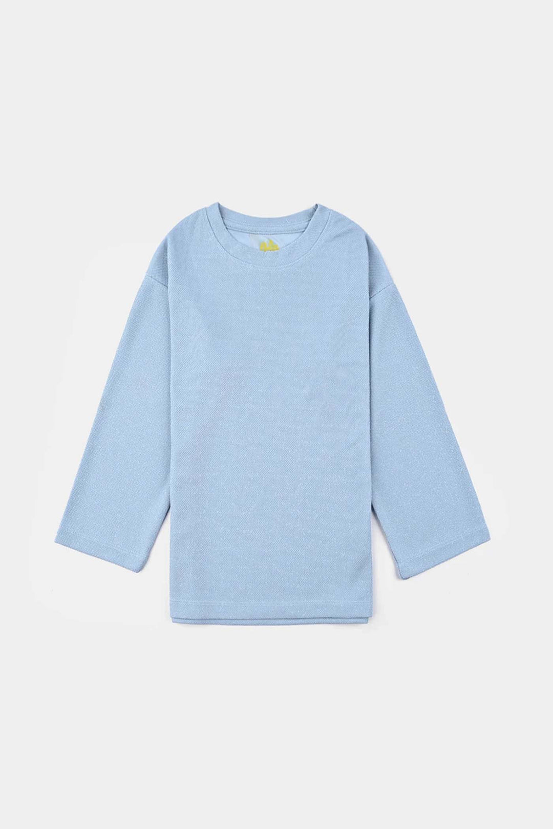 Girls Jacquard T-Shirt F/S BLUE LUREX - Blue