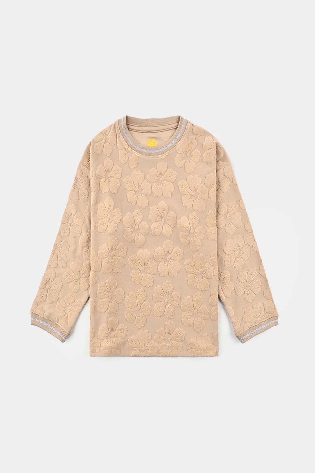Girls Jacquard T-Shirt F/S KHAKI FLOWER FABRIC - BROWN