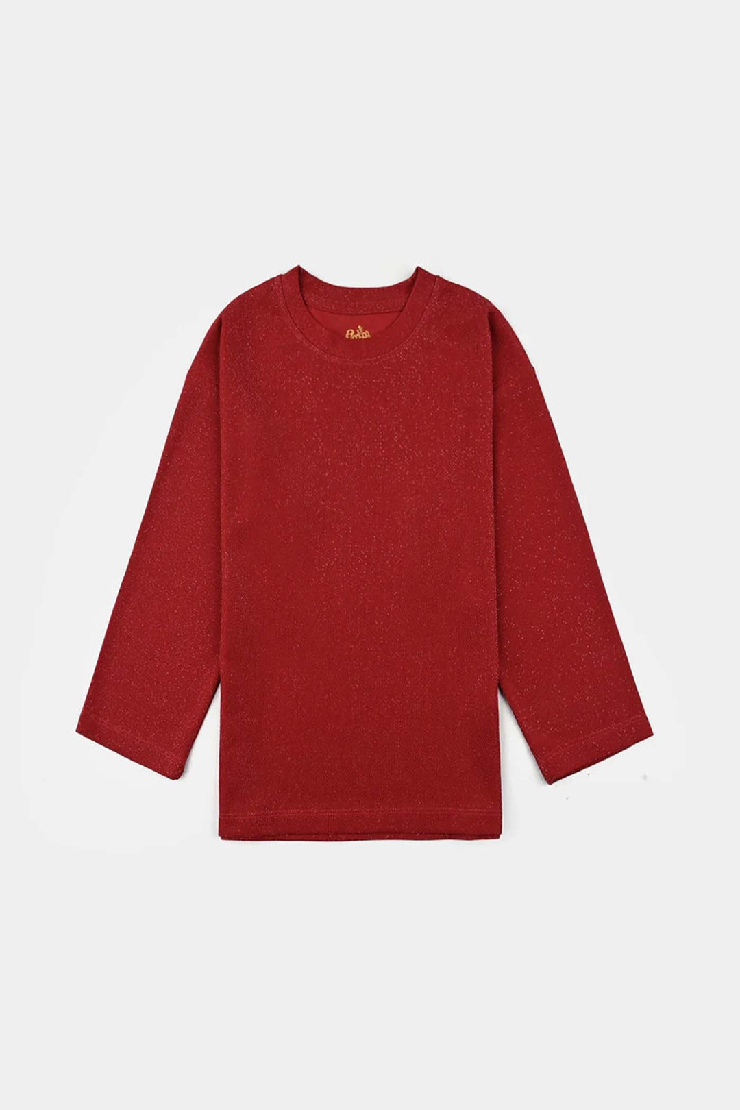 Girls Jacquard T-Shirt F/S RED LUREX - RED